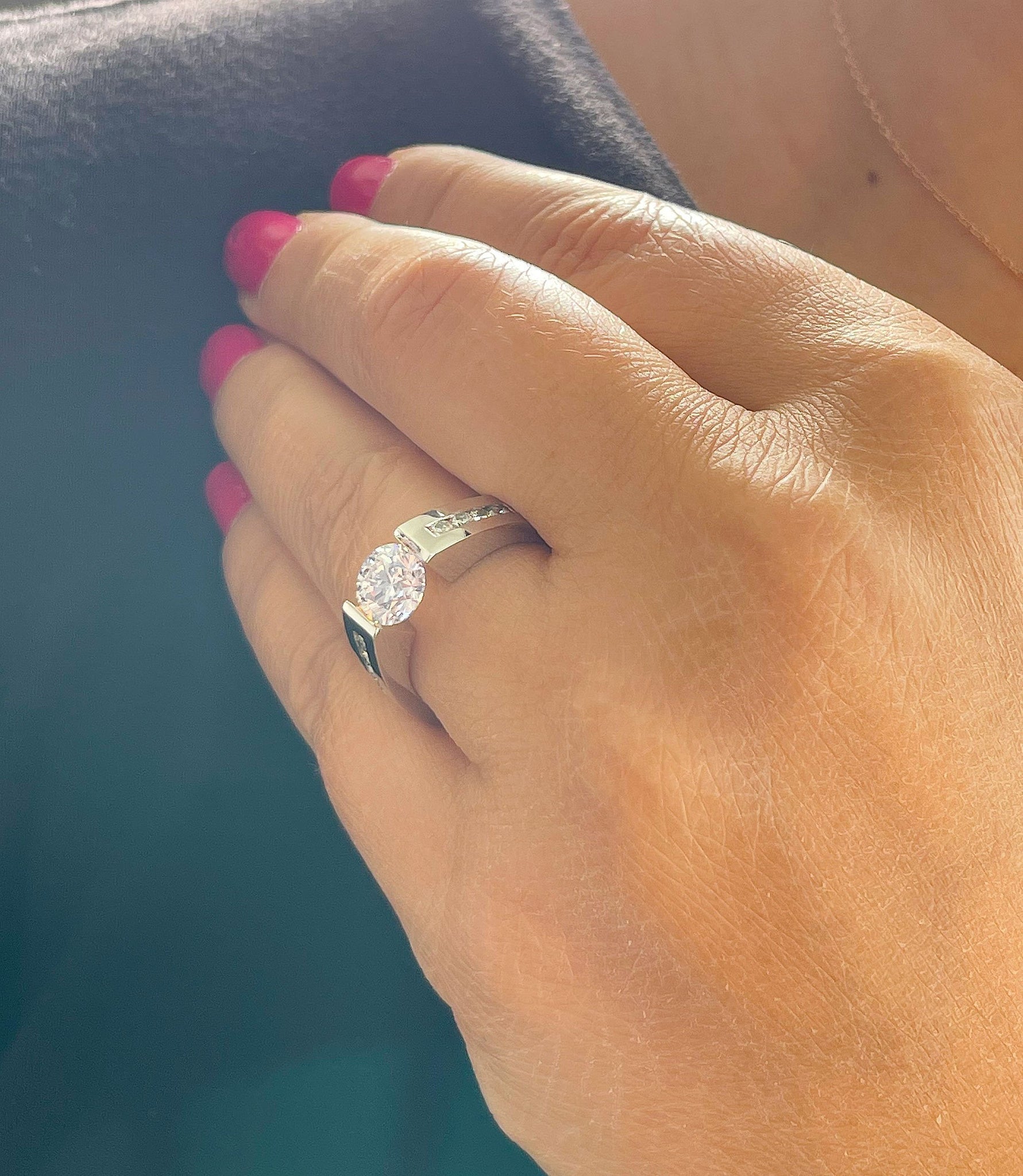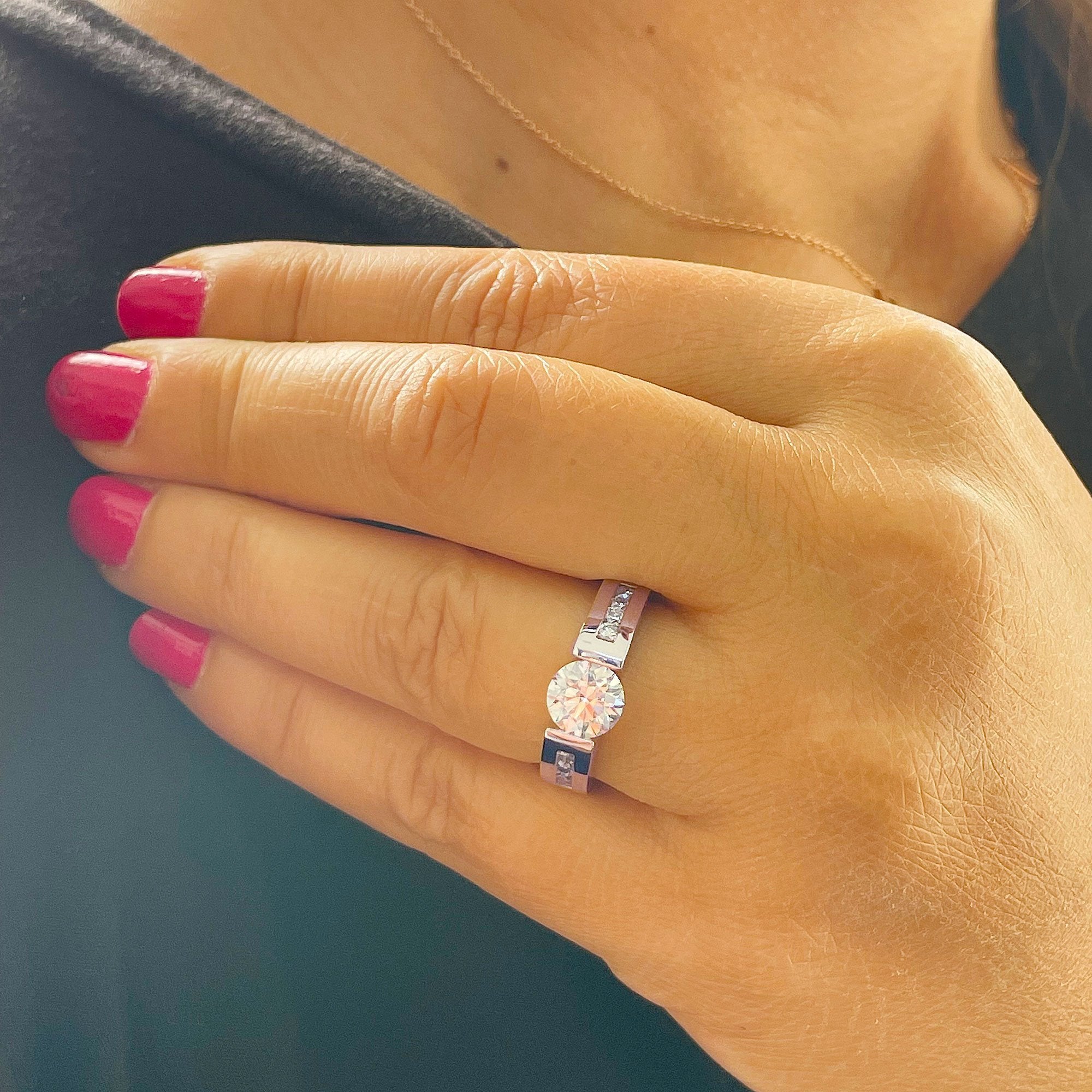 14k Solid And Heavy White Gold Round Cut Natural Diamond Engagement Ring Tension And Channel Set 1.70ctw