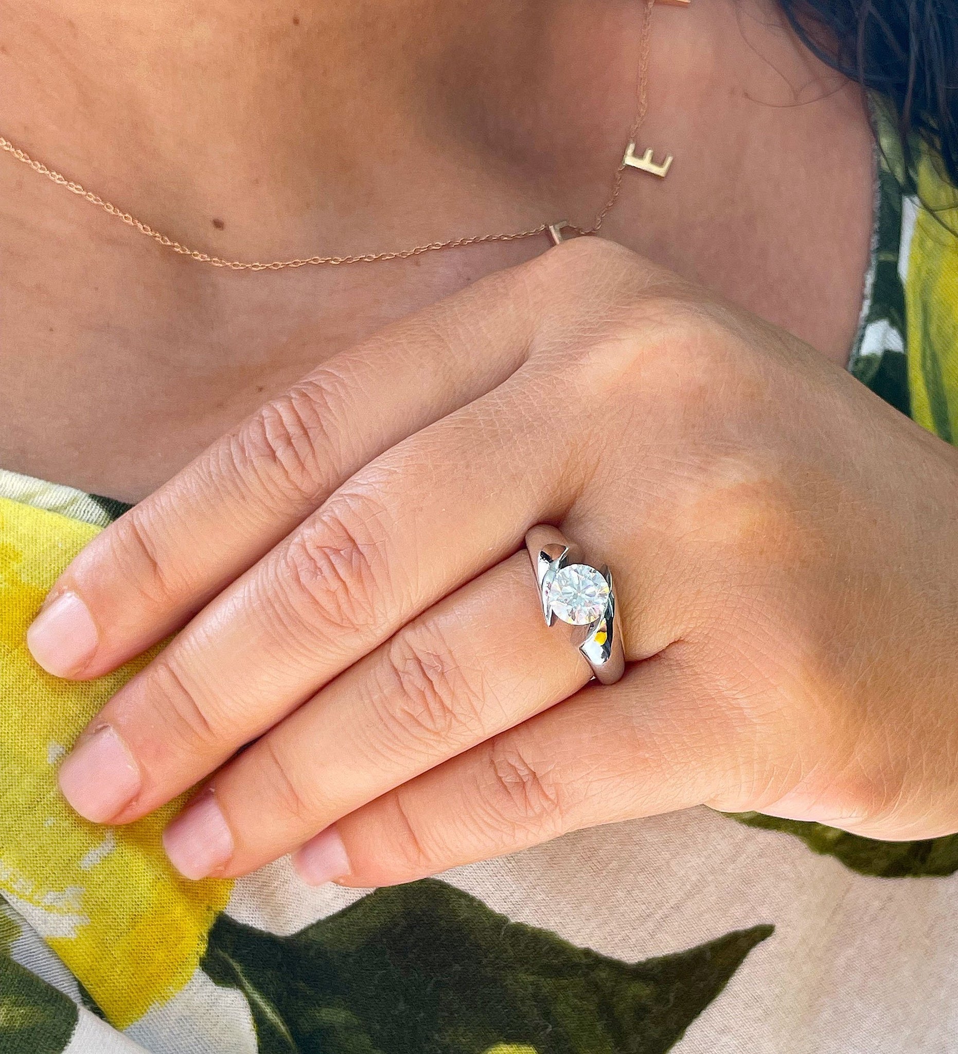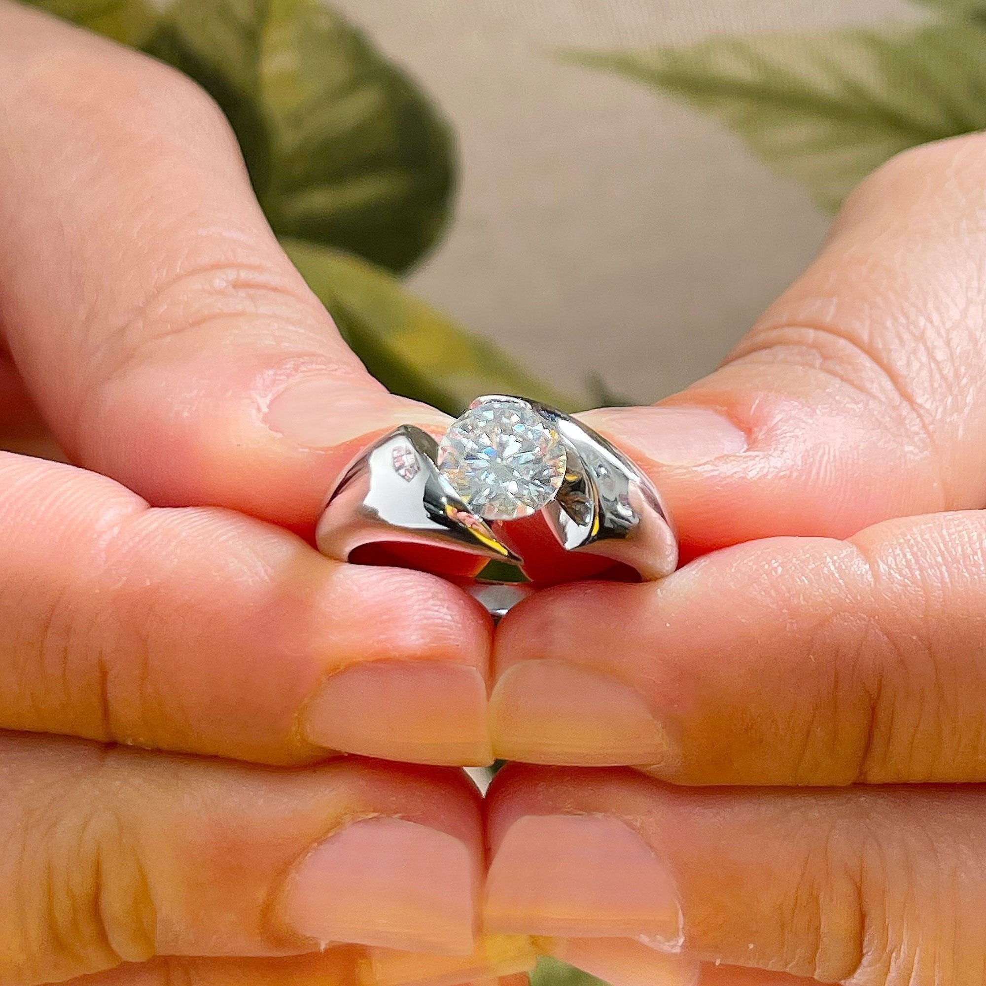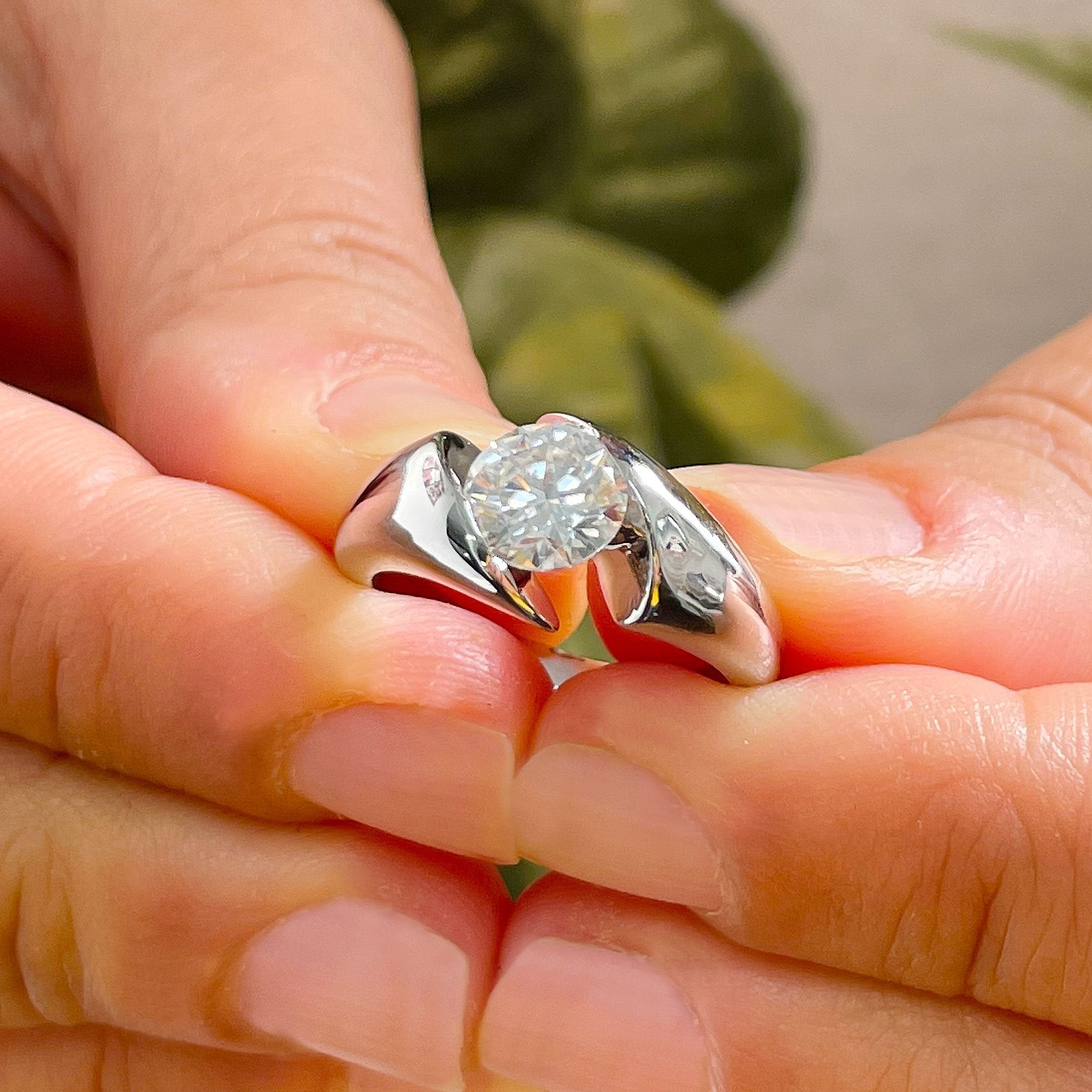 14k Solid And Heavy White Gold Round Cut Natural Engagement Ring Semi Tension Set, Propose, Anniversary, Elegant Solitaire 1.00ctw