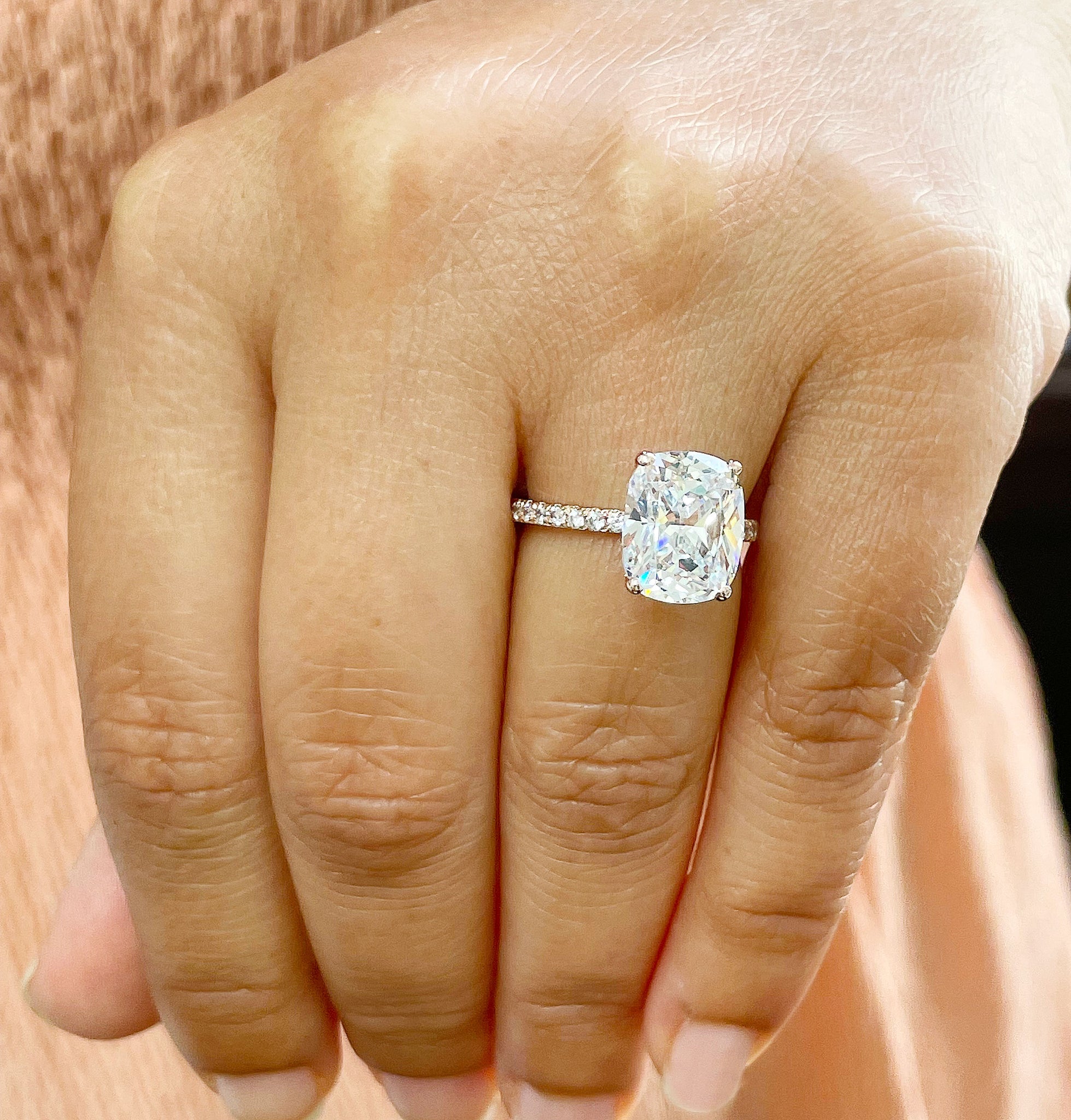 14K Solid Rose Gold Cushion Cut Moissanite And Round Cut Natural Diamonds Engagement Ring, Four prong, Solitaire 5.00ctw