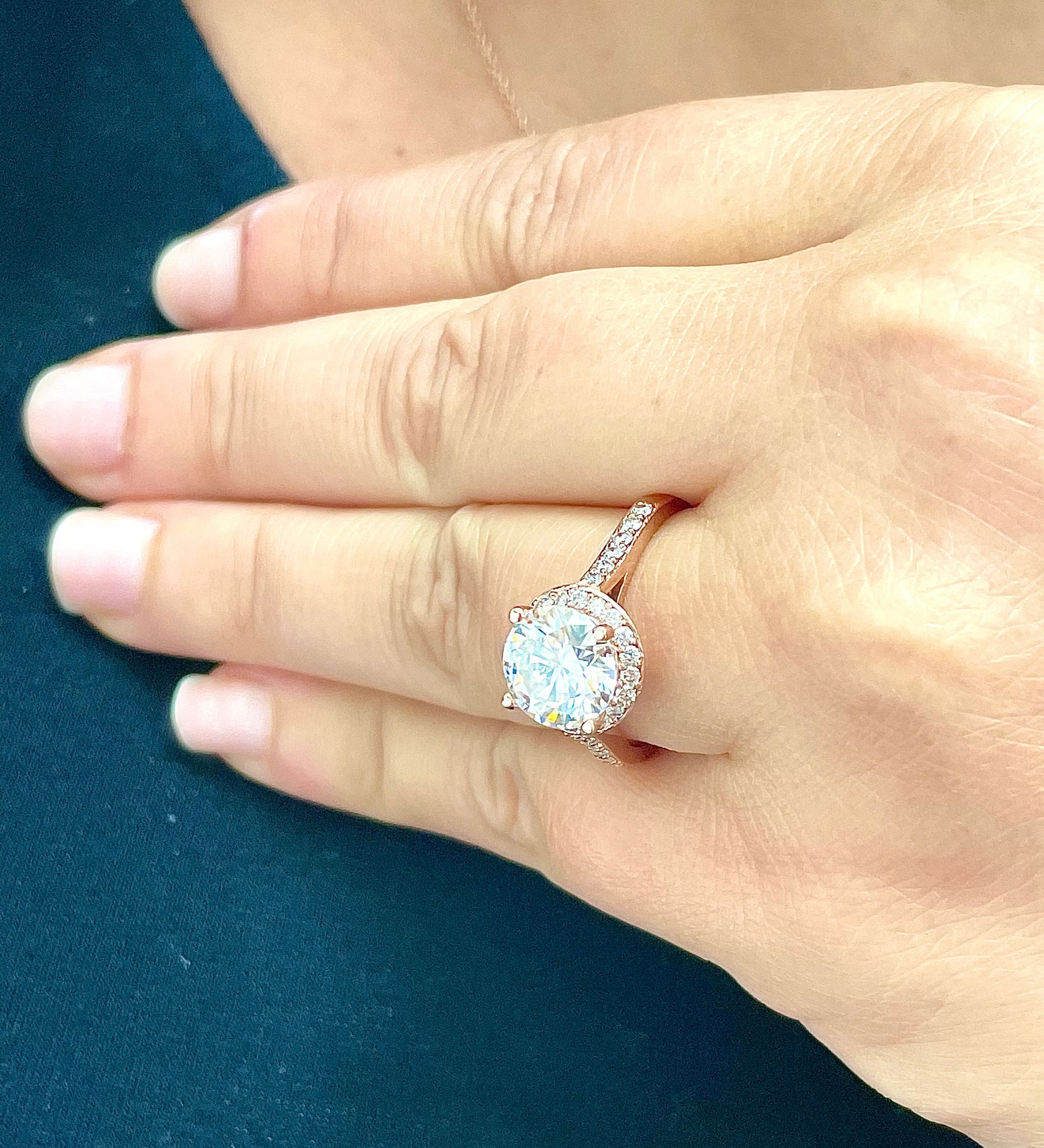 Color: G, pure colorless shades up to six grades whiter than conventional moissanite. With 10 percent more brilliance than diamond explodes with light and shine.