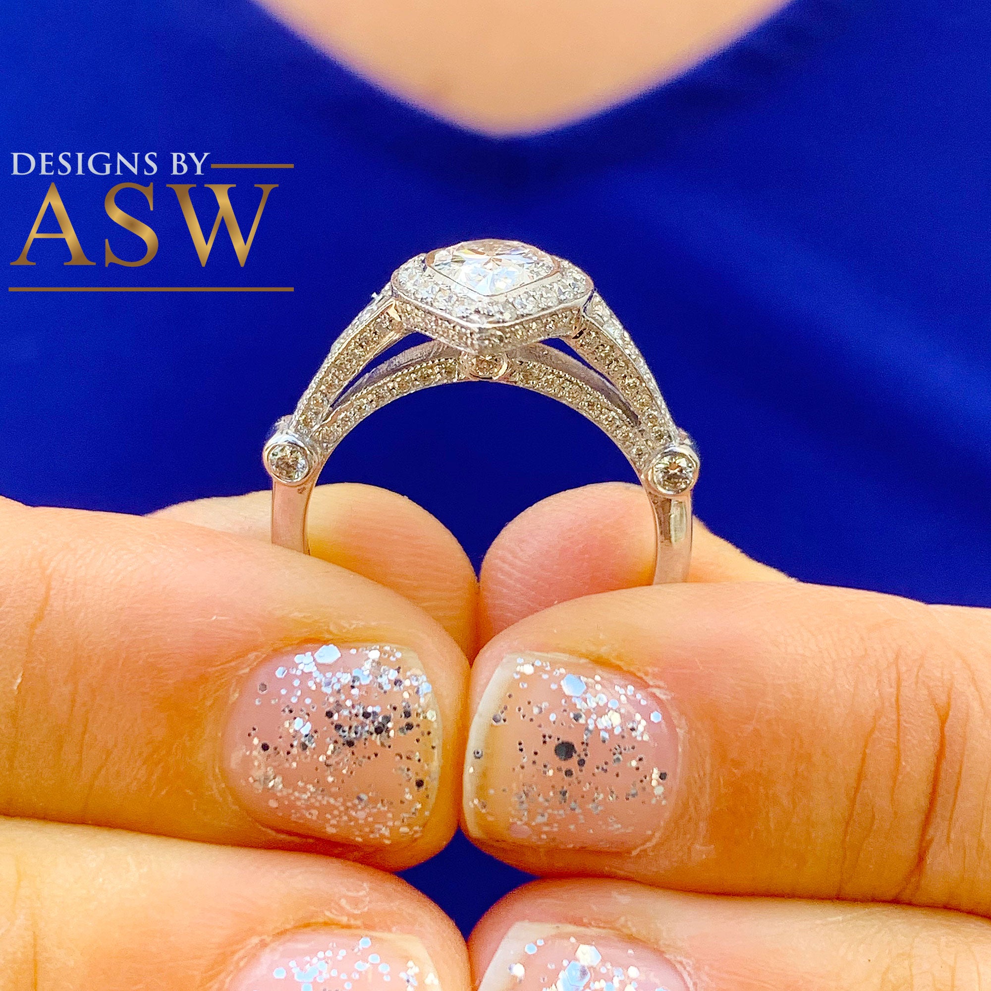 COLOR/ CLARITY : G, pure colorless shades up to four grades whiter than conventional moissanite. With 10 percent more brilliance than diamond explodes with light and shine.