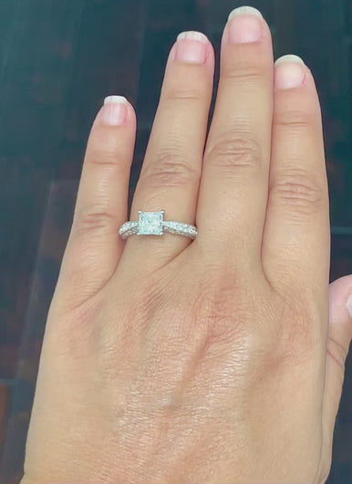 14K Solid White Gold Princess And Round Cut Natural Diamond Engagement Ring Prong Set Bridal, Anniversary, Wedding, Deco 2.40ctw