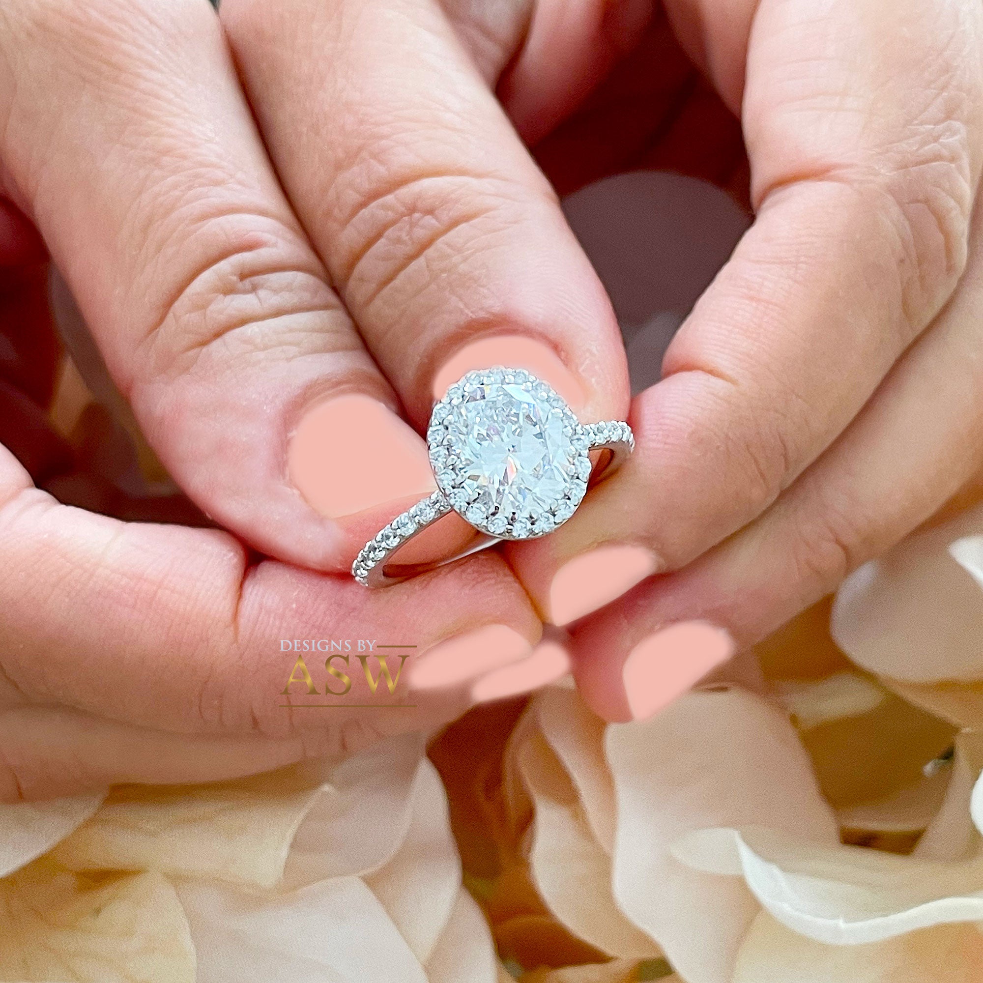 This beautiful and elegant ring design is a beautiful creation showcasing the center oval cut surrounded with beautiful and sparkly round cut diamonds.