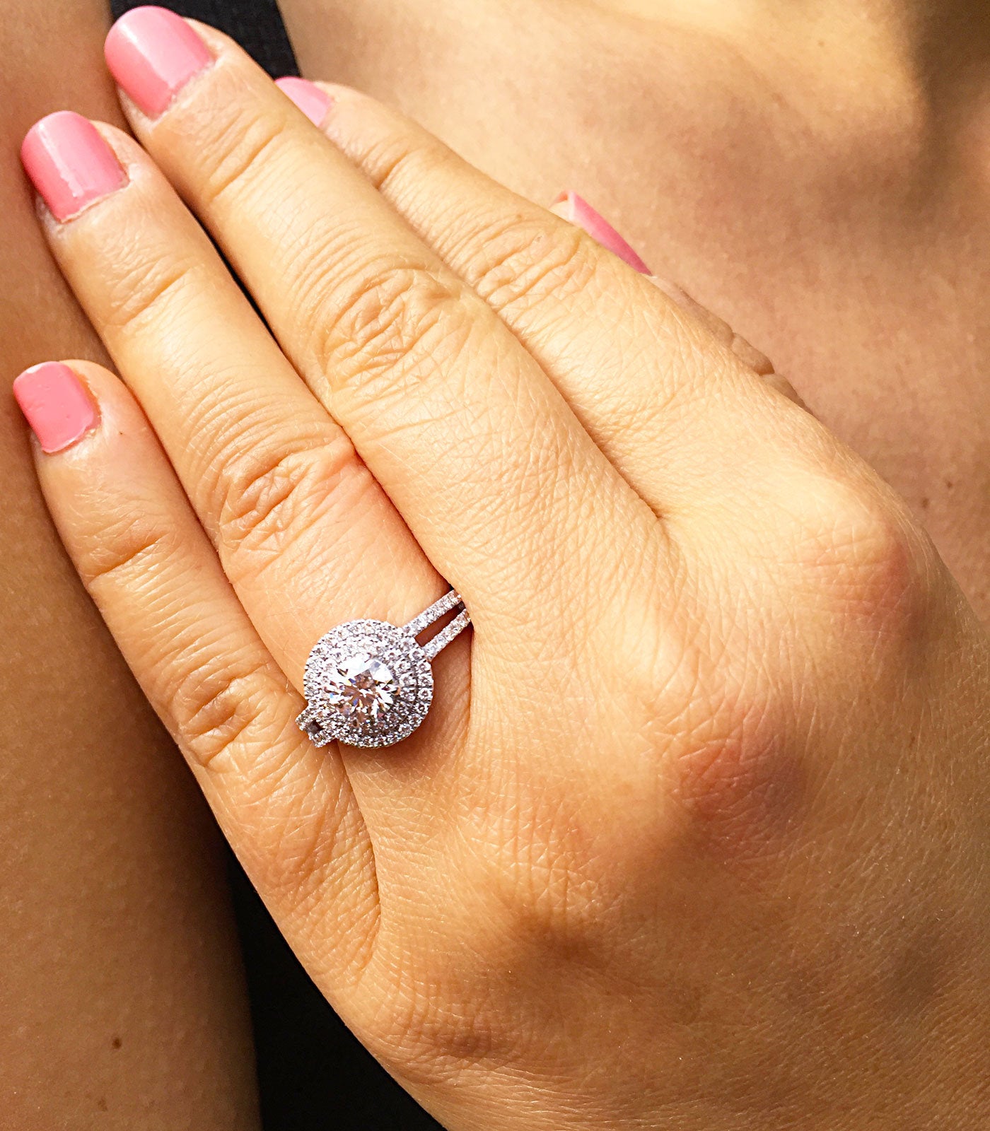 14k white gold round cut diamond engagement ring split shank double have natural diamonds, bridal wedding anniversary 1.25ctw