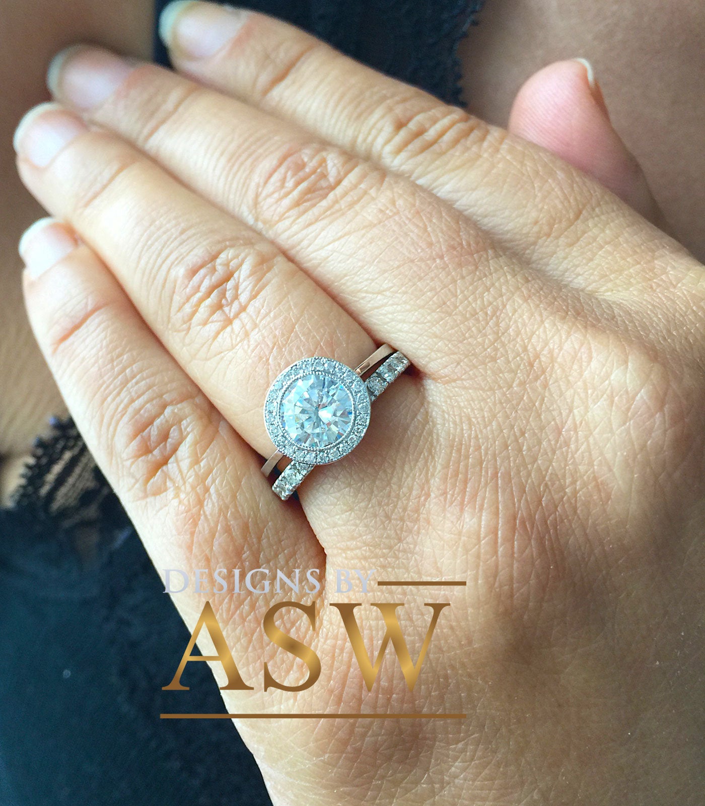 Color: G-H, pure colorless shades up to six grades whiter than conventional moissanite. With 10 percent more brilliance than diamond explodes with light and shine.