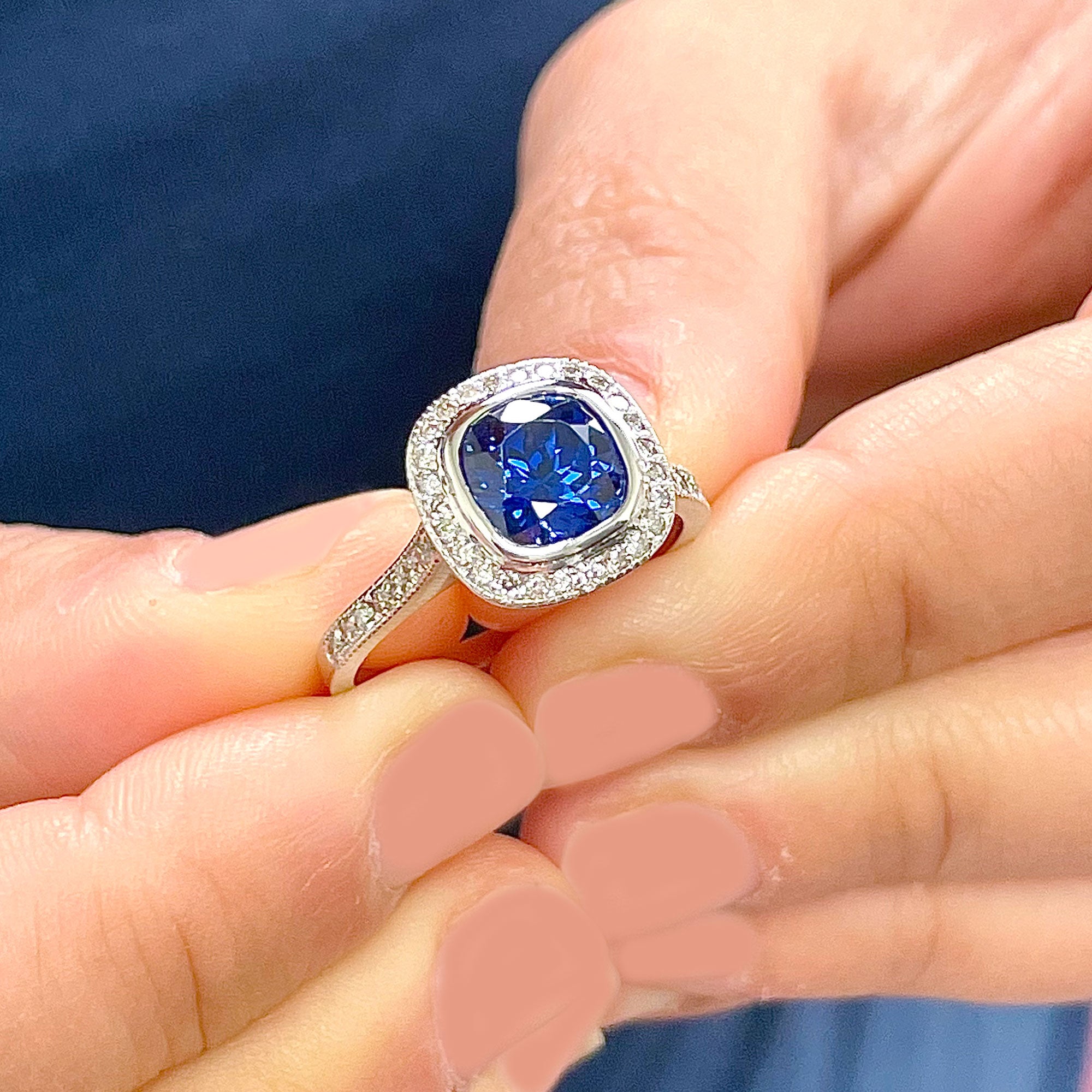 Center Stone Shape: Cushion, lab created with high quality stone looks just like real