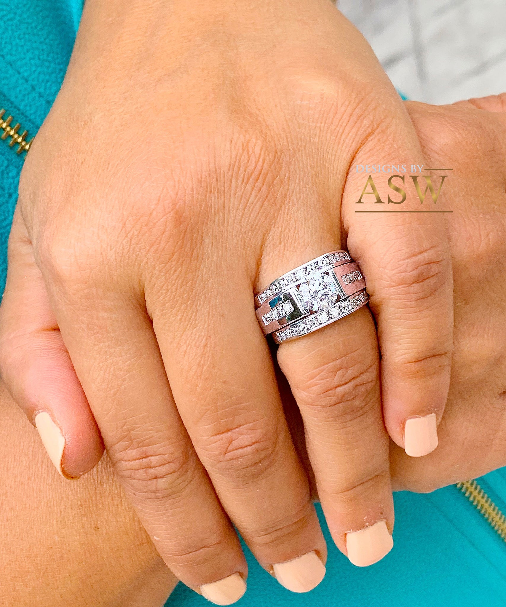 Side Stone Weight (including two bands): 1.50ct, 100% natural diamonds very clean and shiny