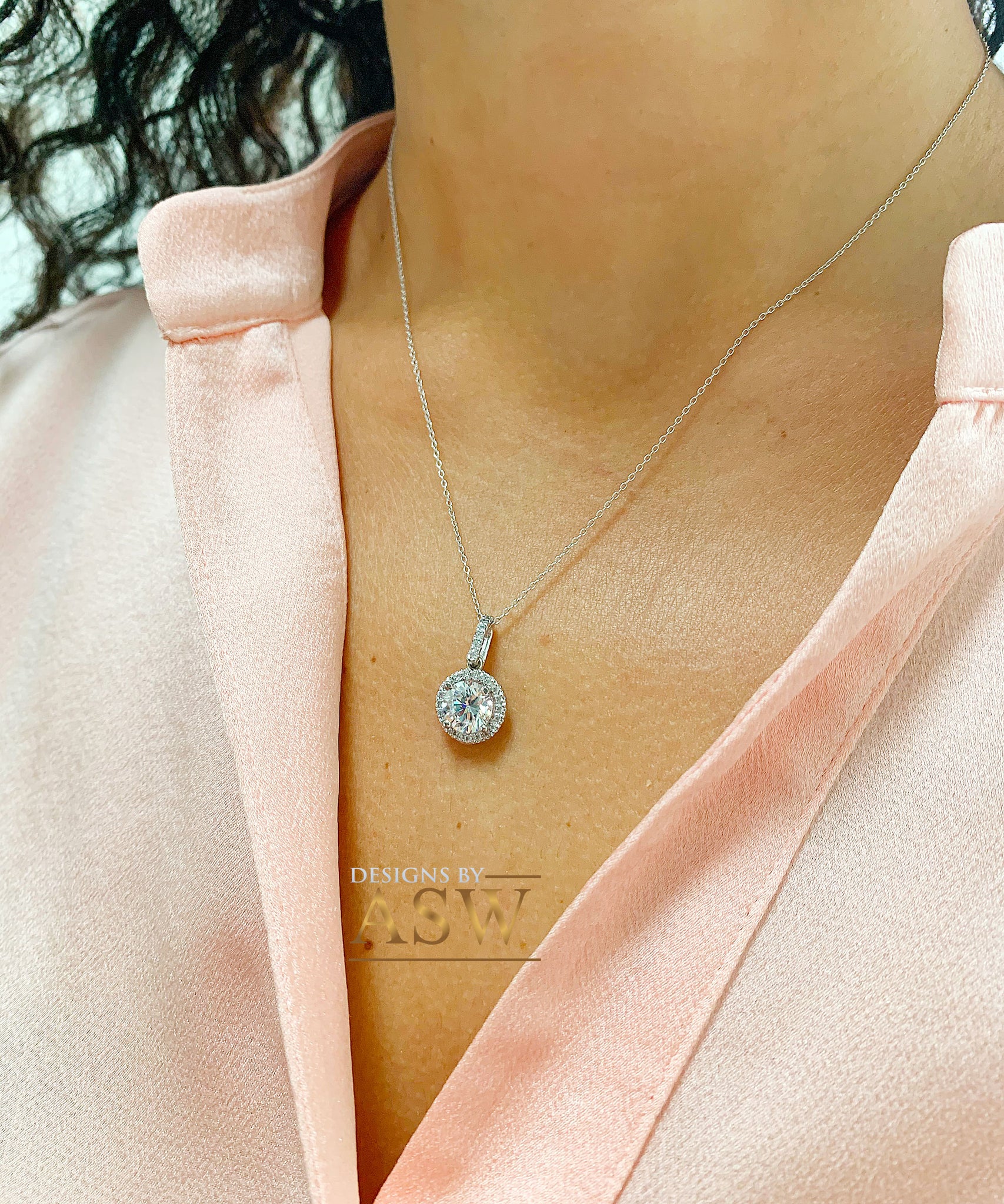 Women's 14k Solid White Gold Moissanite And Natural Diamond, Necklace, Pendent, Bridal Wedding Gift, 1.75ctw Chain Included
