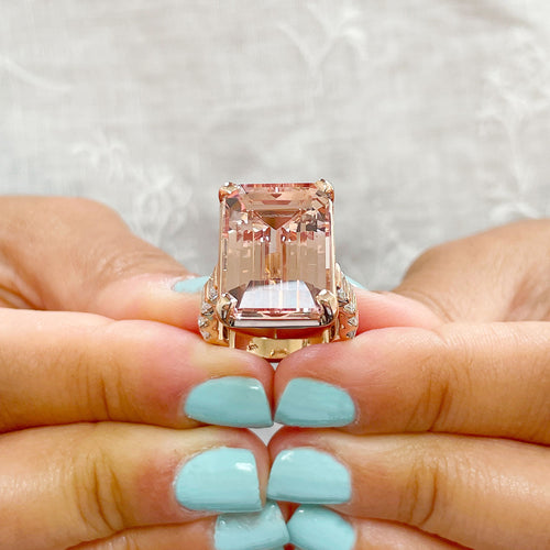 14K Solid Rose Gold Emerald Cut Natural Peach Morganite and emerald cut Simulated Diamonds Engagement Ring Bridal Wedding 13.50ctw