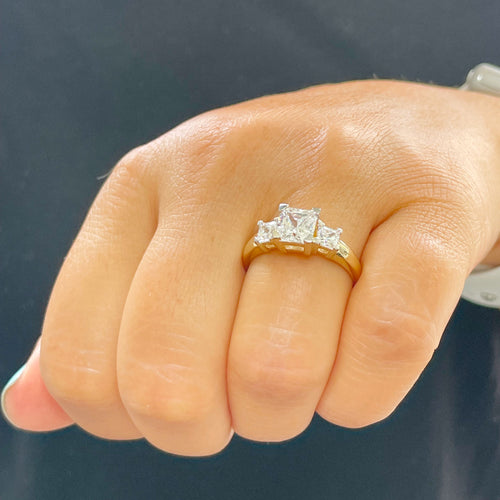 14k Solid Yellow Gold Princess Cut Natural Diamond Engagement Ring Bridal Wedding Three stone style 2.20ct