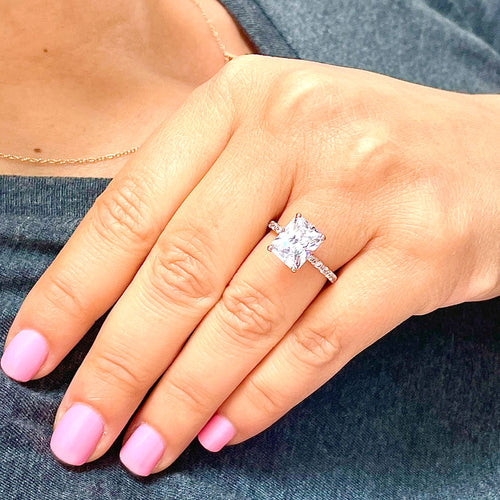 14K Solid Rose Gold Radiant Cut Moissanite And Round Cut Natural Diamonds Engagement Ring, Anniversary, Four prong, Solitaire 4.30ctw