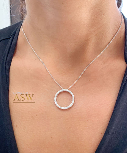 14k white gold round cut diamond prong set necklace pendent and chain circle of love life bridal wedding anniversary gift natural 0.80ctw