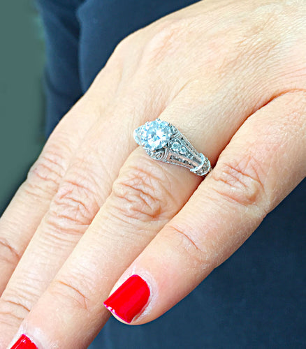 14k White Gold Round Cut Forever One Moissanite and Diamond Engagement Ring, Bridal, Wedding, Natural Diamonds 1.85ctw