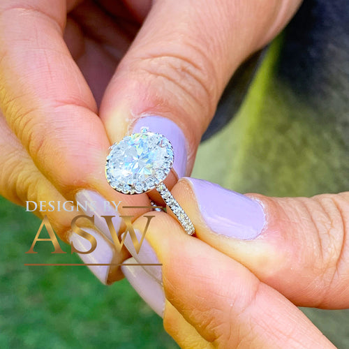 14K White Gold Oval Cut Moissanite And Round Cut Natural Diamonds Engagement Ring Deco, Halo, Bridal, Wedding, Anniversary, Propose 2.00ctw
