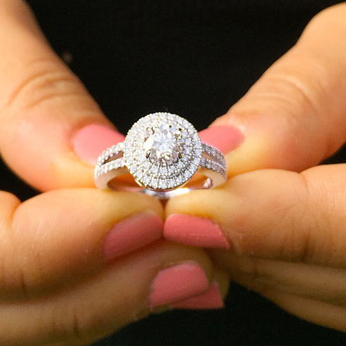 14k white gold round cut diamond engagement ring split shank double have natural diamonds, bridal wedding anniversary 1.25ctw