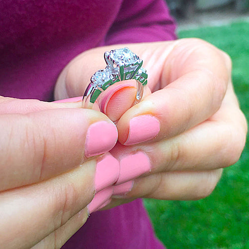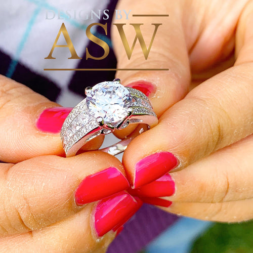 HUGE 4.50 Carat 14k Solid White Gold Round Cut Moissanite and Natural Diamond Engagement Ring And Band, Bridal Set, Wedding