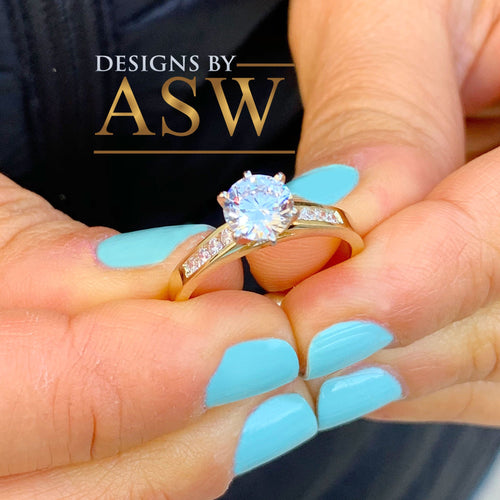 14k Yellow Gold Round Cut Forever One Moissanite and Round Cut Natural Diamond Engagement Ring Bridal Wedding Propose, Half Eternity 1.15ctw