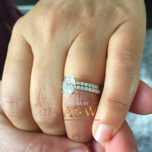 14K Solid White Gold Oval Cut Moissanite And Natural Round Cut Engagement Ring And Band Halo, Bridal, Wedding, Anniversary, Propose 2.30ctw
