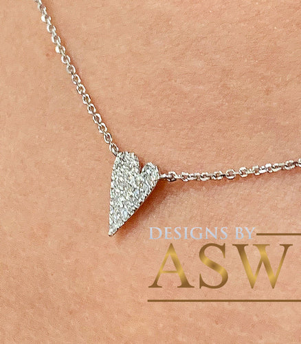14k white gold Heart Shape round cut natural diamonds necklace pendent and adjustable chain bridal wedding anniversary gift 0.15ctw