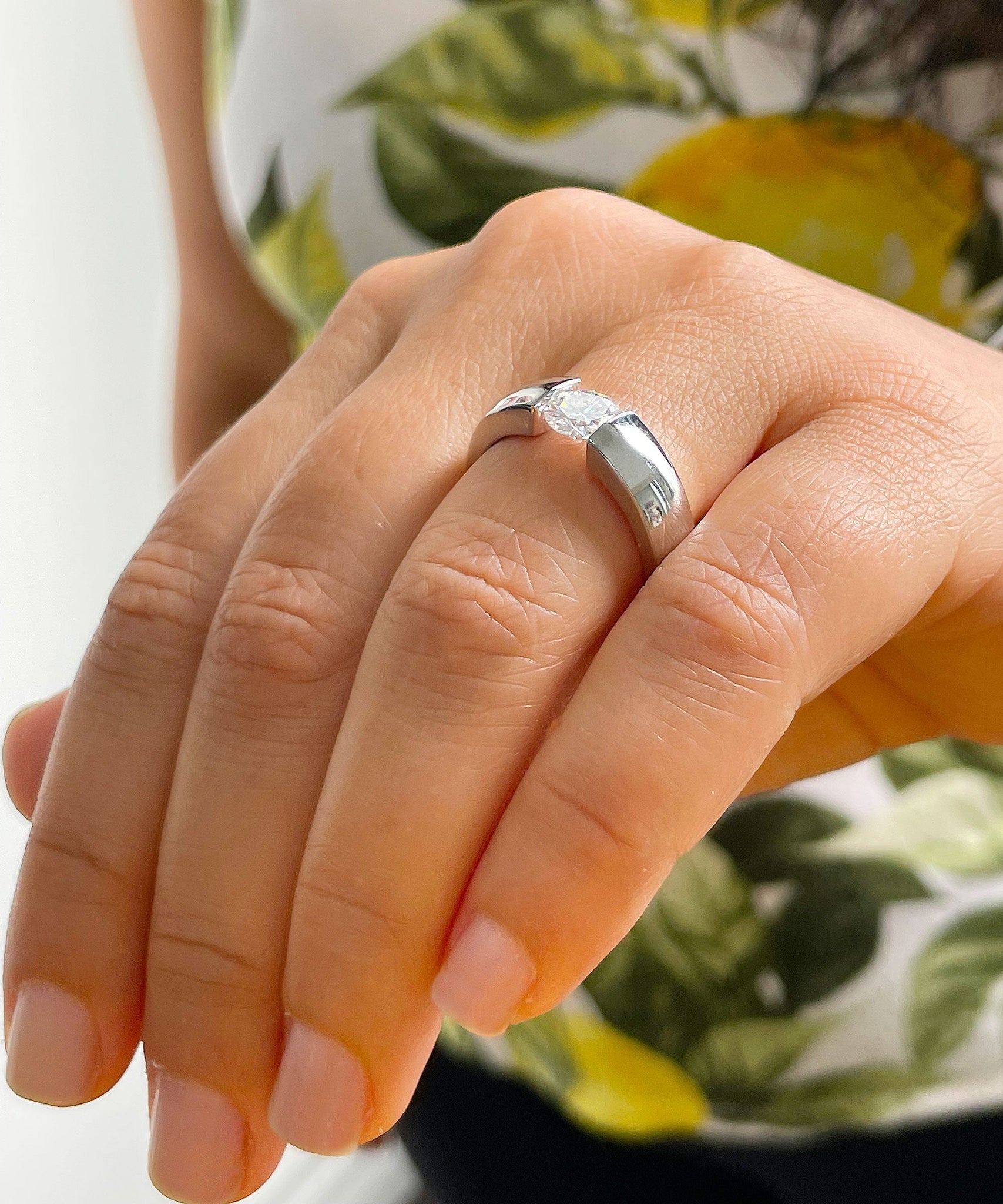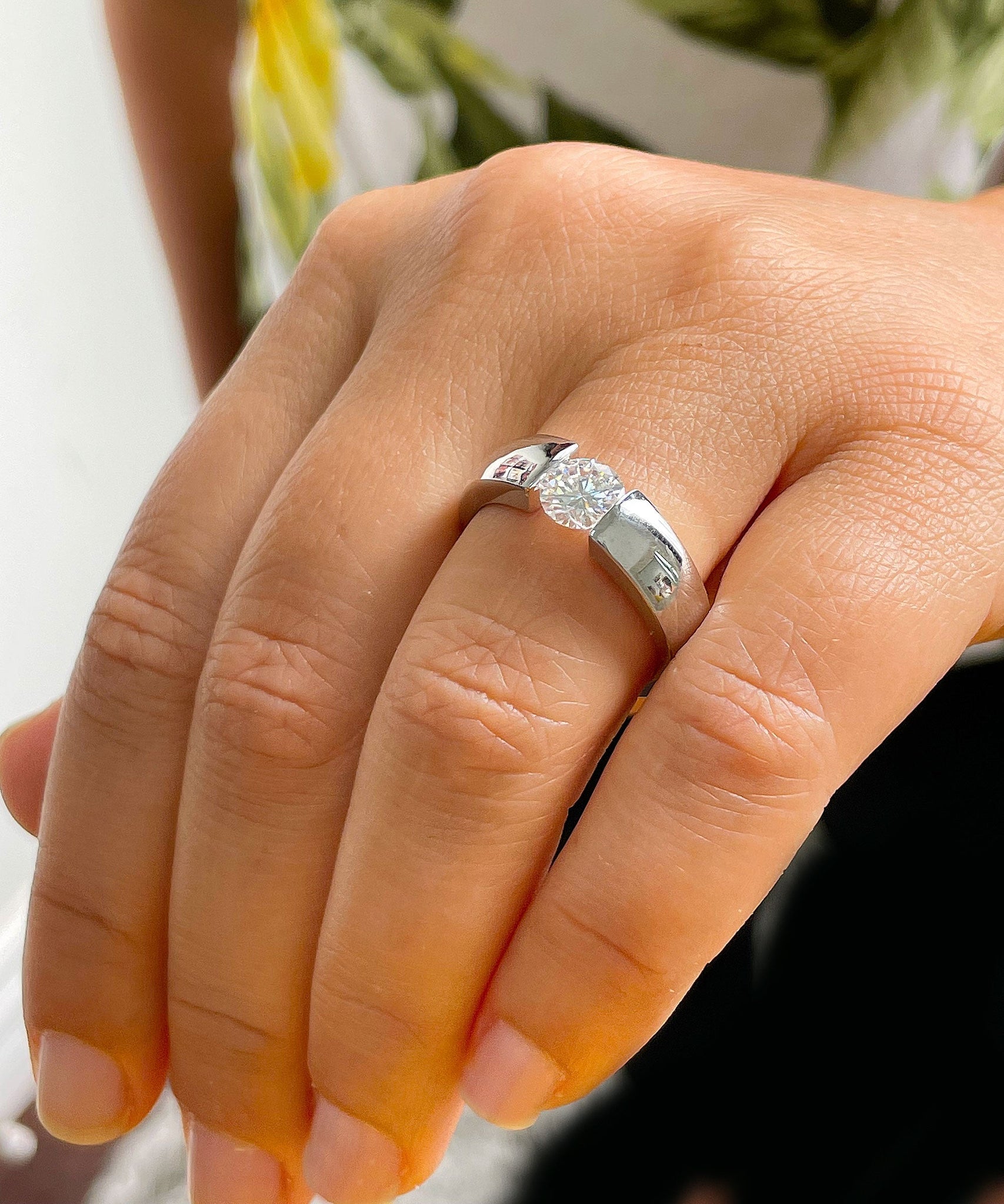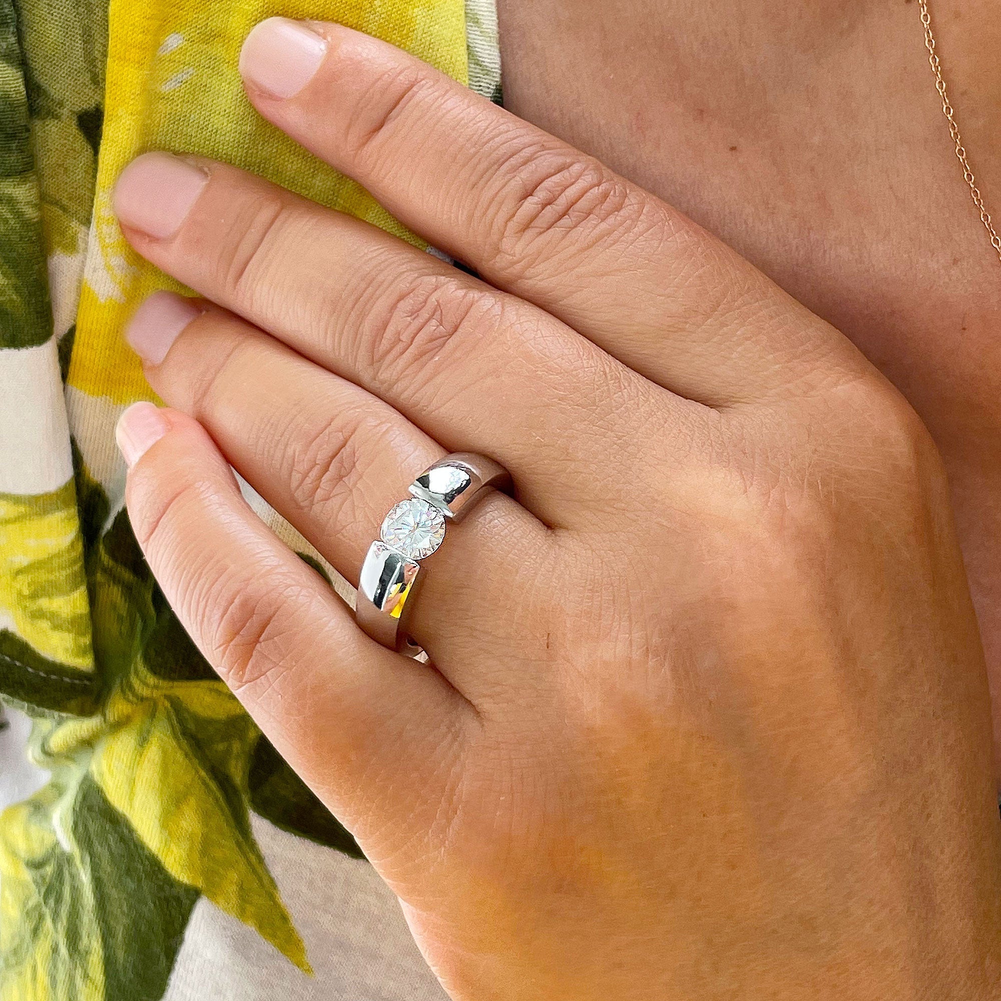 14K SOLID White GOLD, 1.00CTW ROUND CUT MOISSANITE TENSION SET STYLE ENGAGEMENT RING