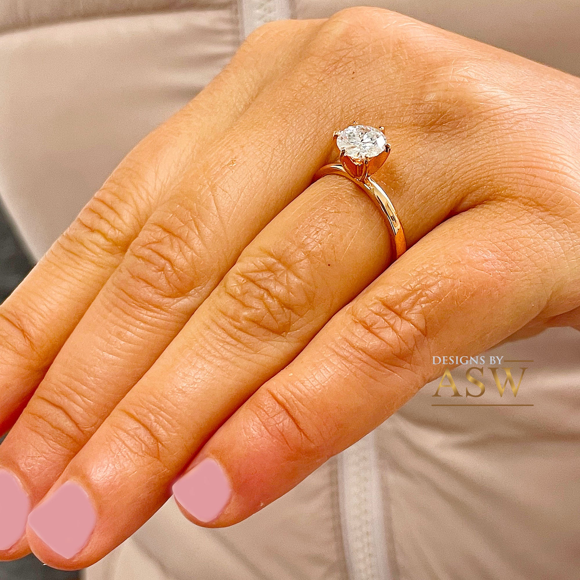 14K Solid Rose Gold Round Cut Moissanite Engagement Ring Deco, Bridal, Wedding, Anniversary, Six prong set, Solitaire 1.20ctw
