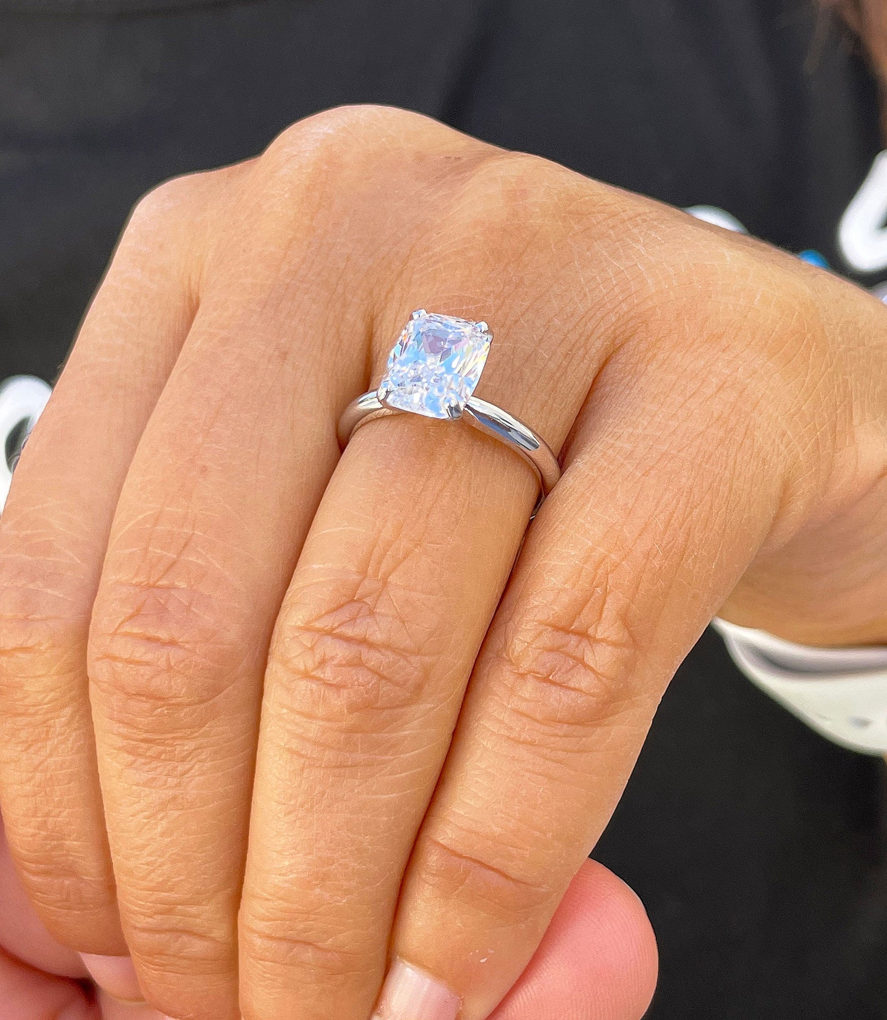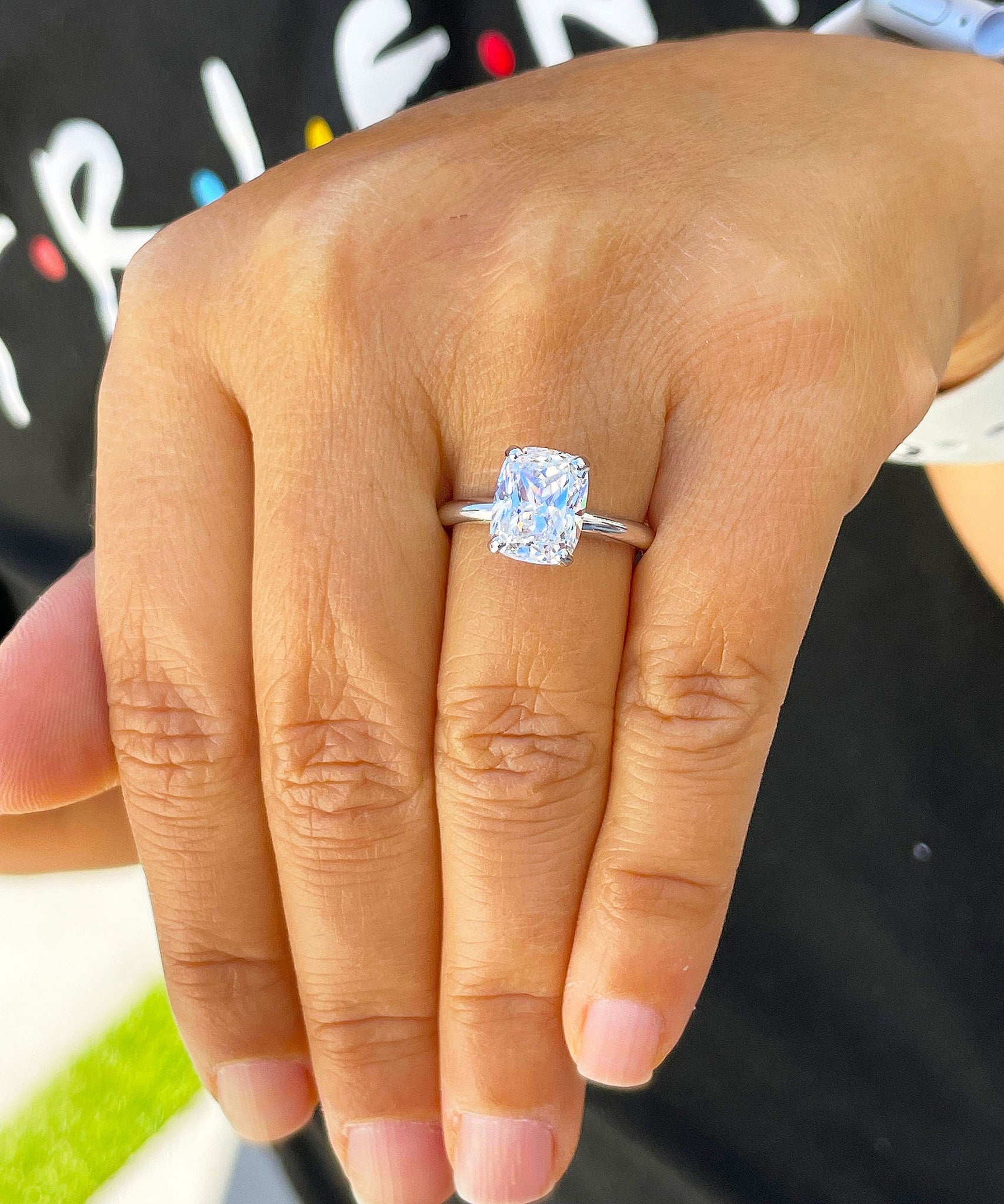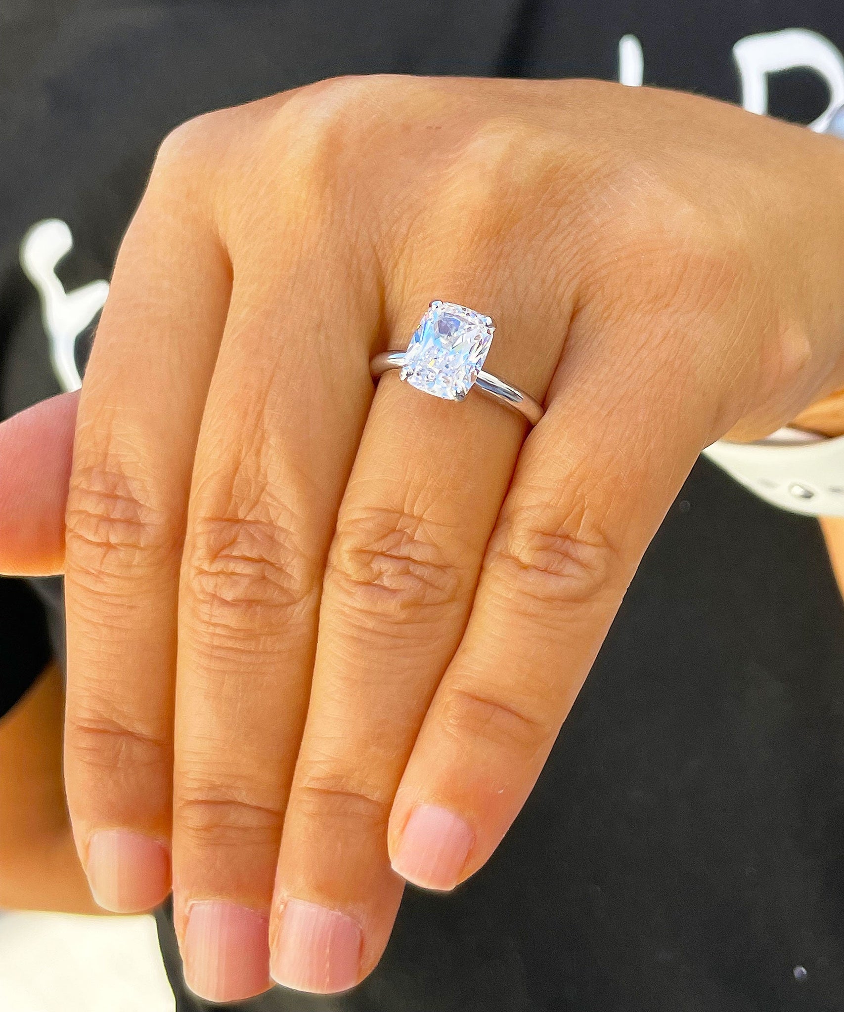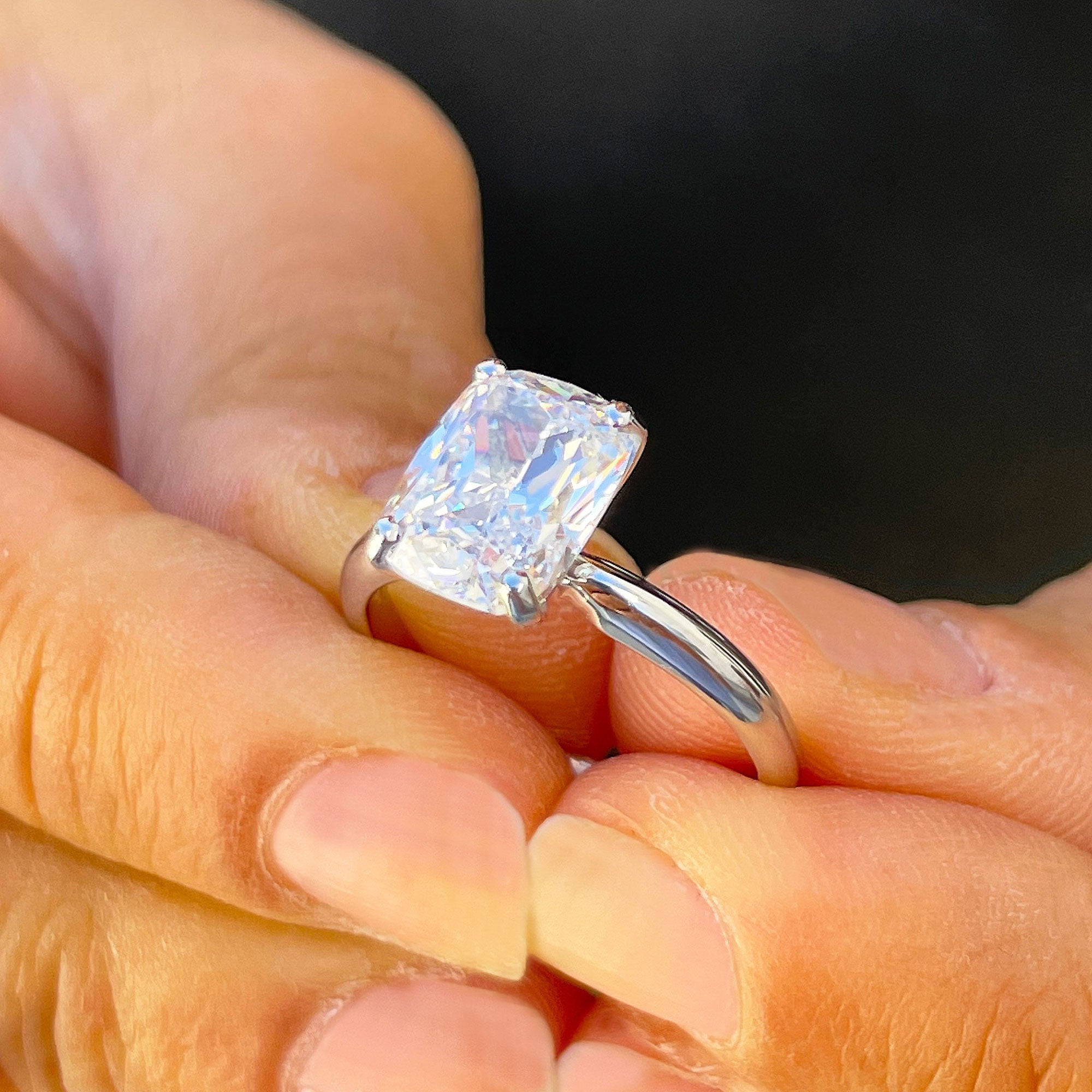 14K SOLID WHITE GOLD, 3.50CTW CUSHION CUT FOREVER ONE MOISSANITE, ART-DECO PRONG SET SOLITAIRE STYLE ENGAGEMENT RING