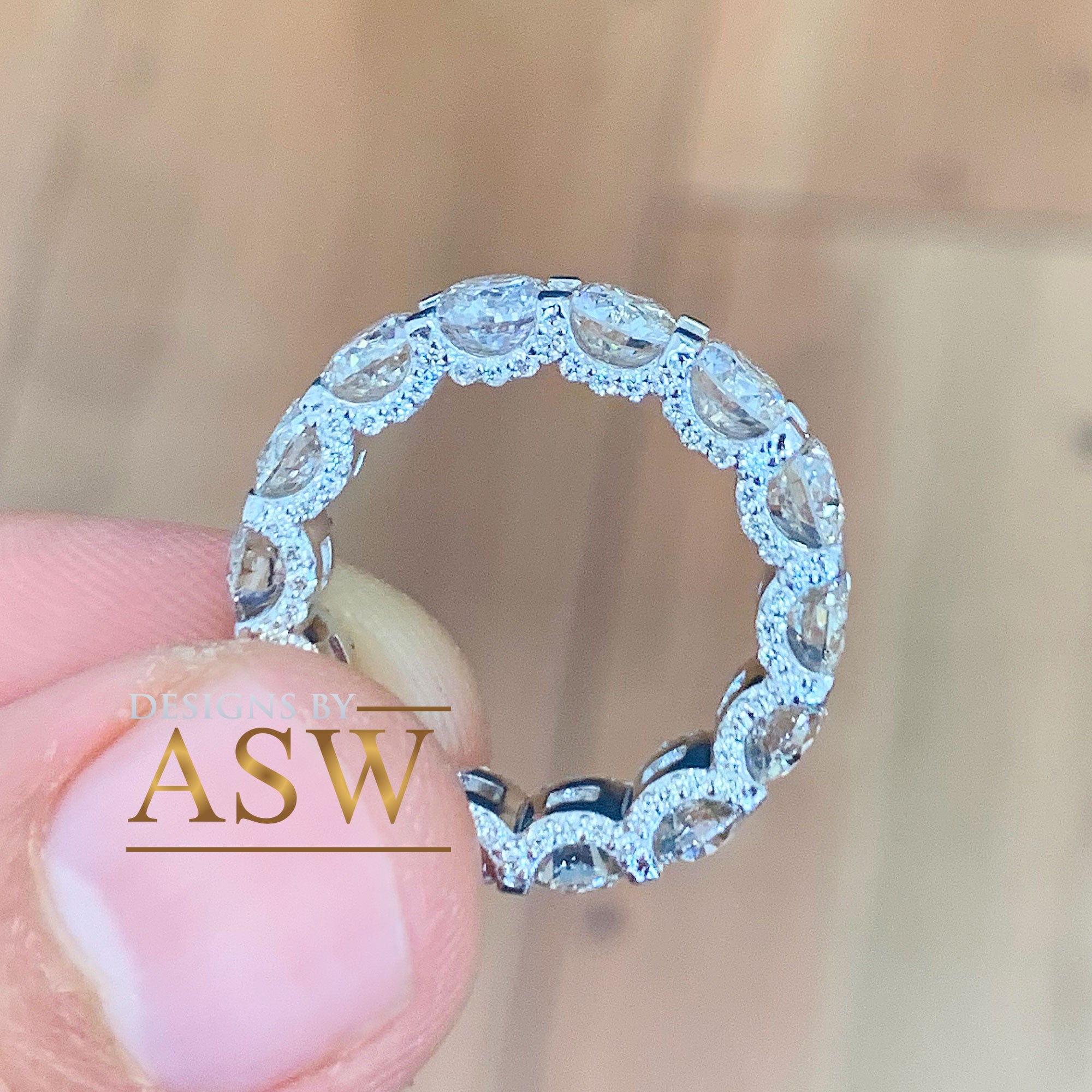 THIS BEAUTIFUL CLASSIC & ELEGANT BAND IS 5.0MM WIDE HAS LARGE BEAUTIFUL ROUND CUT DIAMONDS GOING ALL AROUND THE BAND.