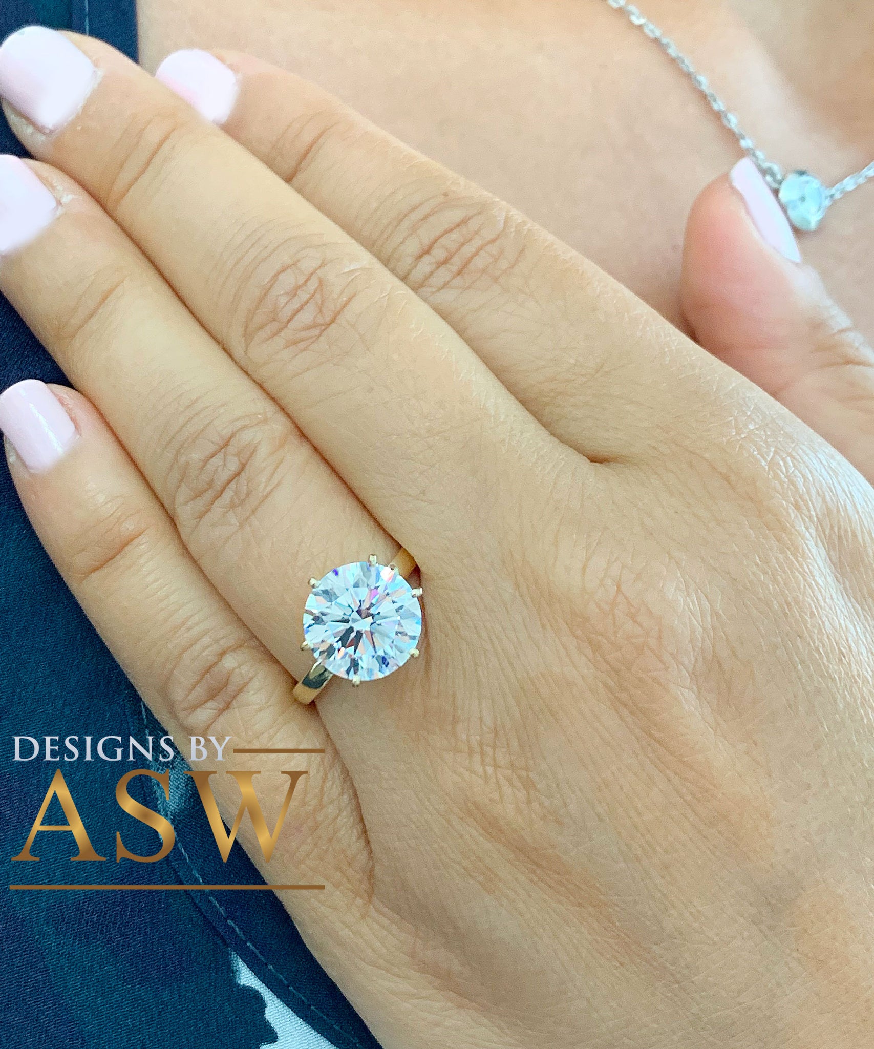 14K SOLID YELLOW GOLD, 4.00CTW ROUND CUT FOREVER ONE MOISSANITE, ART-DECO PRONG SET SOLITAIRE STYLE ENGAGEMENT RING