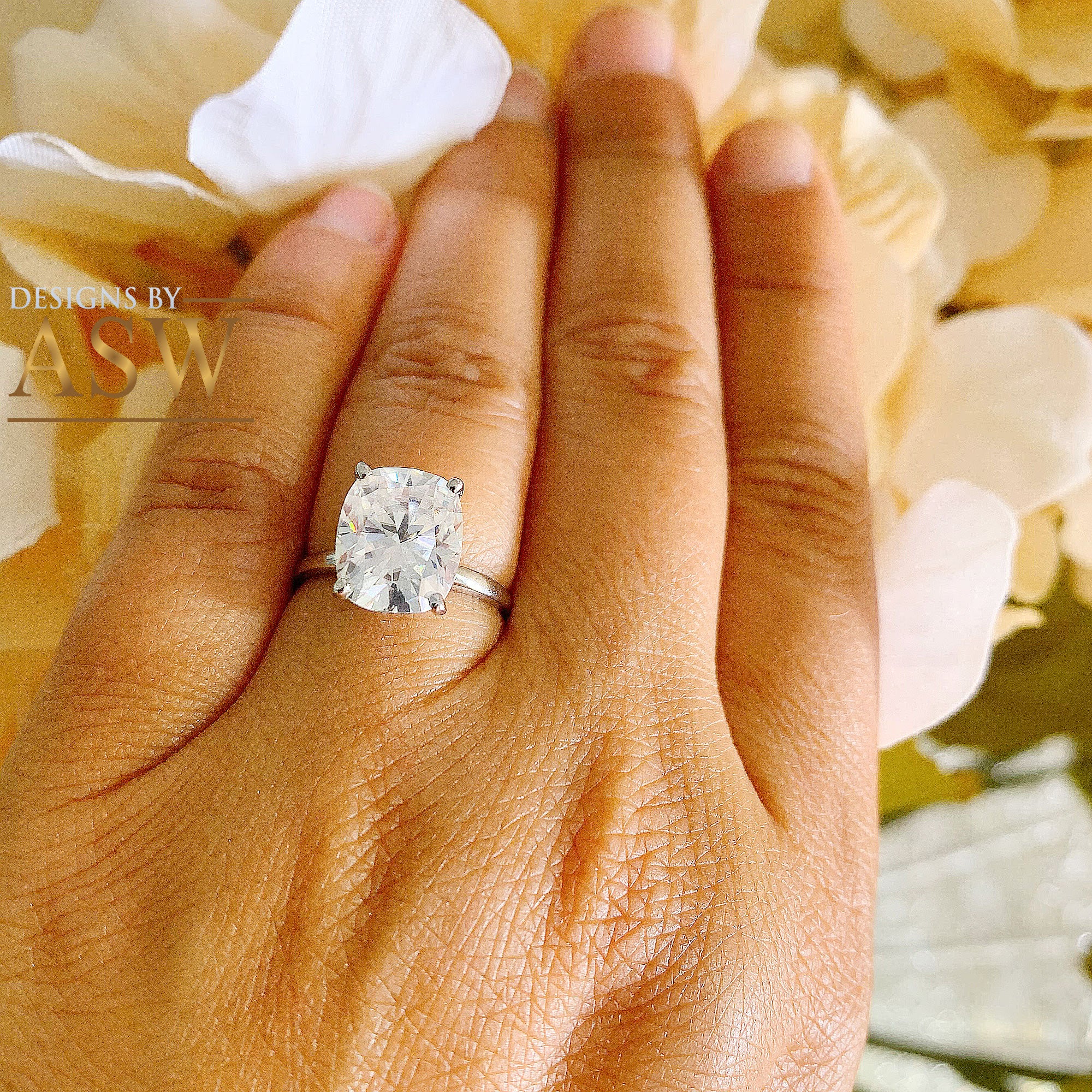 14K Solid White Gold Cushion Cut Forever One Moissanite Engagement Ring Deco, Bridal, Wedding, Anniversary, Four prong, Solitaire 4.20ctw