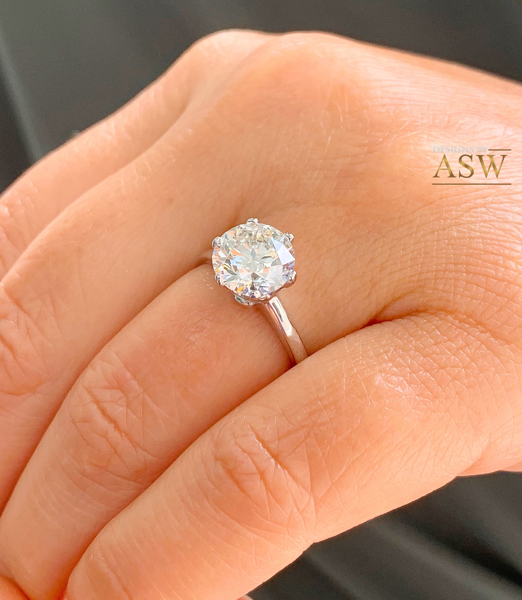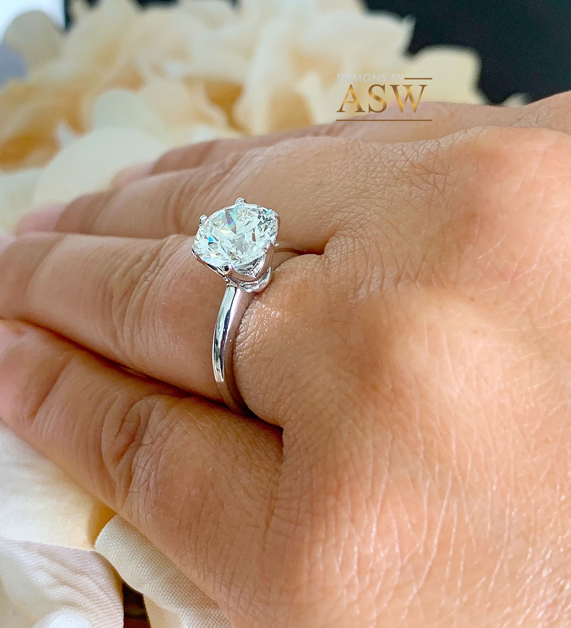 14K SOLID WHITE GOLD, 3.00CTW ROUND CUT FOREVER ONE MOISSANITE, ART-DECO PRONG SET SOLITAIRE STYLE ENGAGEMENT RING