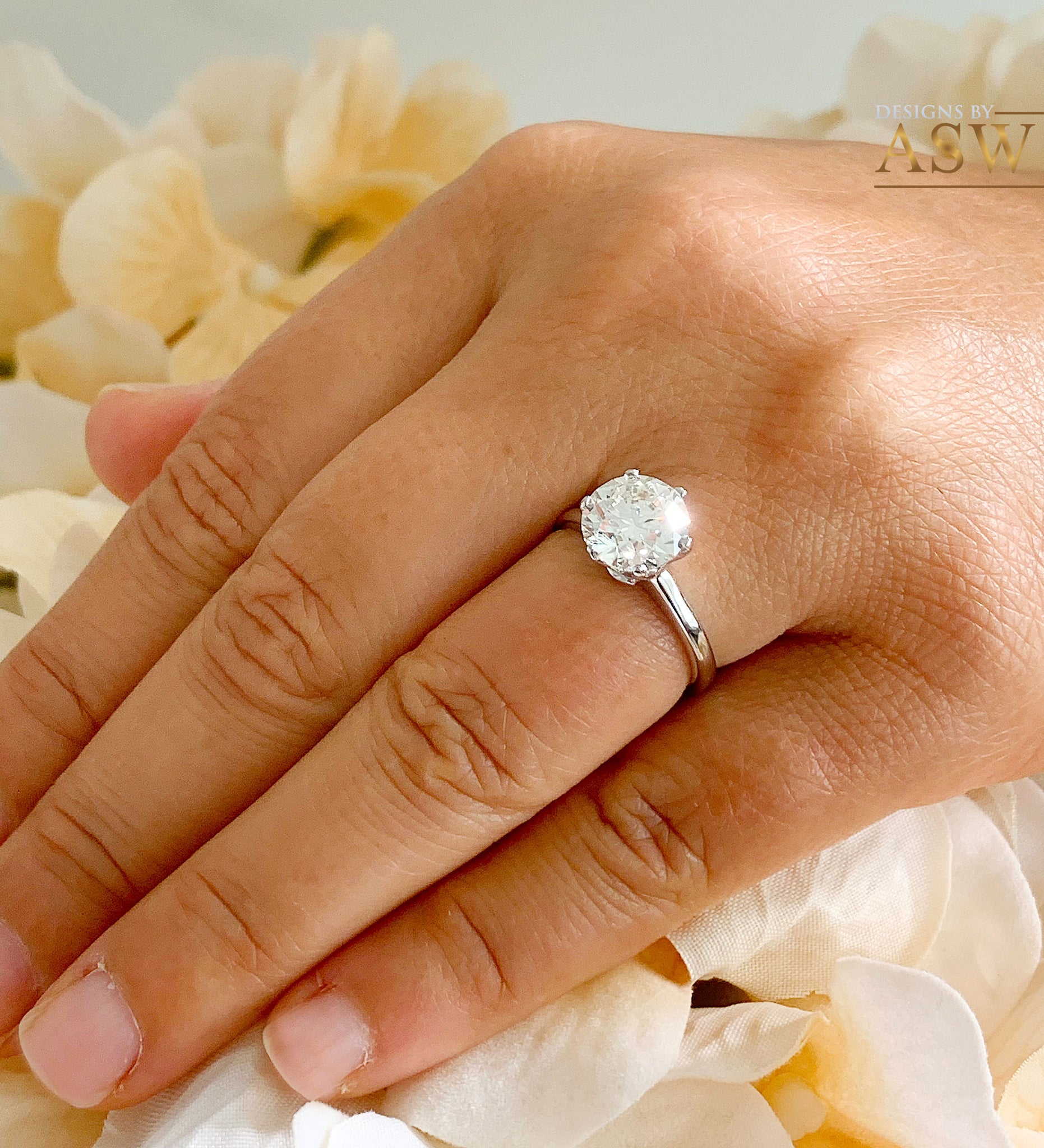 Crown Setting Design 14K Solid White Gold Round Cut Moissanite Engagement Ring Bridal, Wedding, Six prong set, Solitaire 3.00ctw