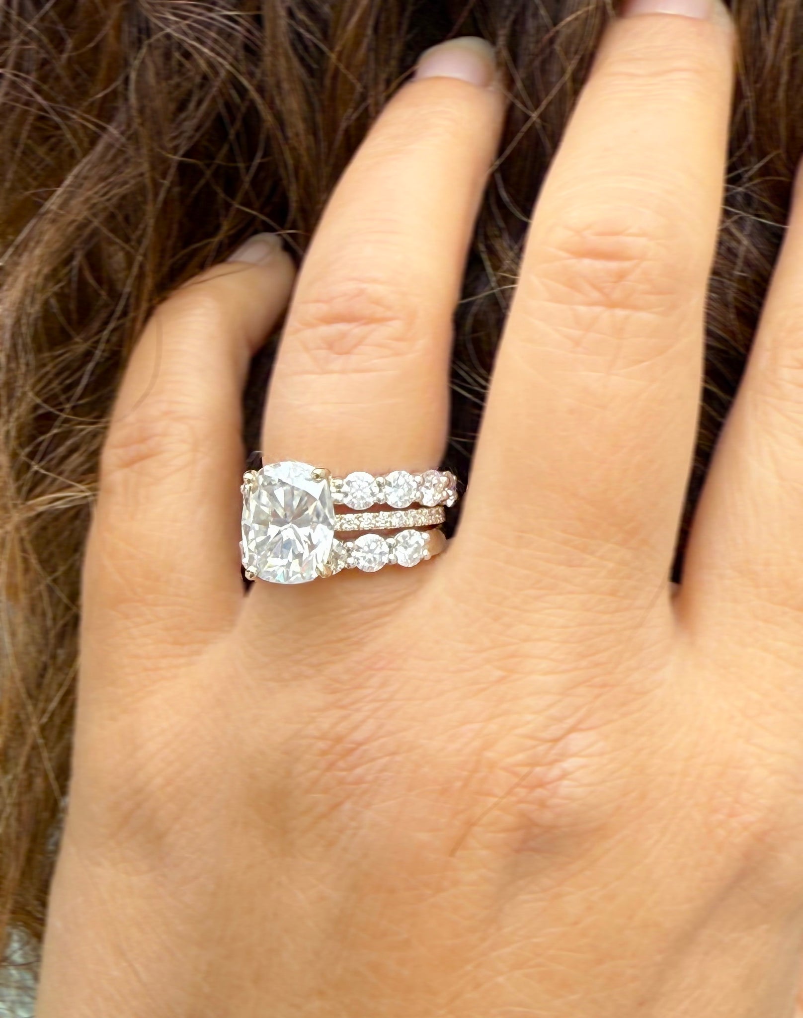 Elongated Cushion Cut Moissanite Engagement Ring And Two Matching Bands Set In 14K Solid Yellow Gold Four Prong Wedding Ring And Band 7.00ct