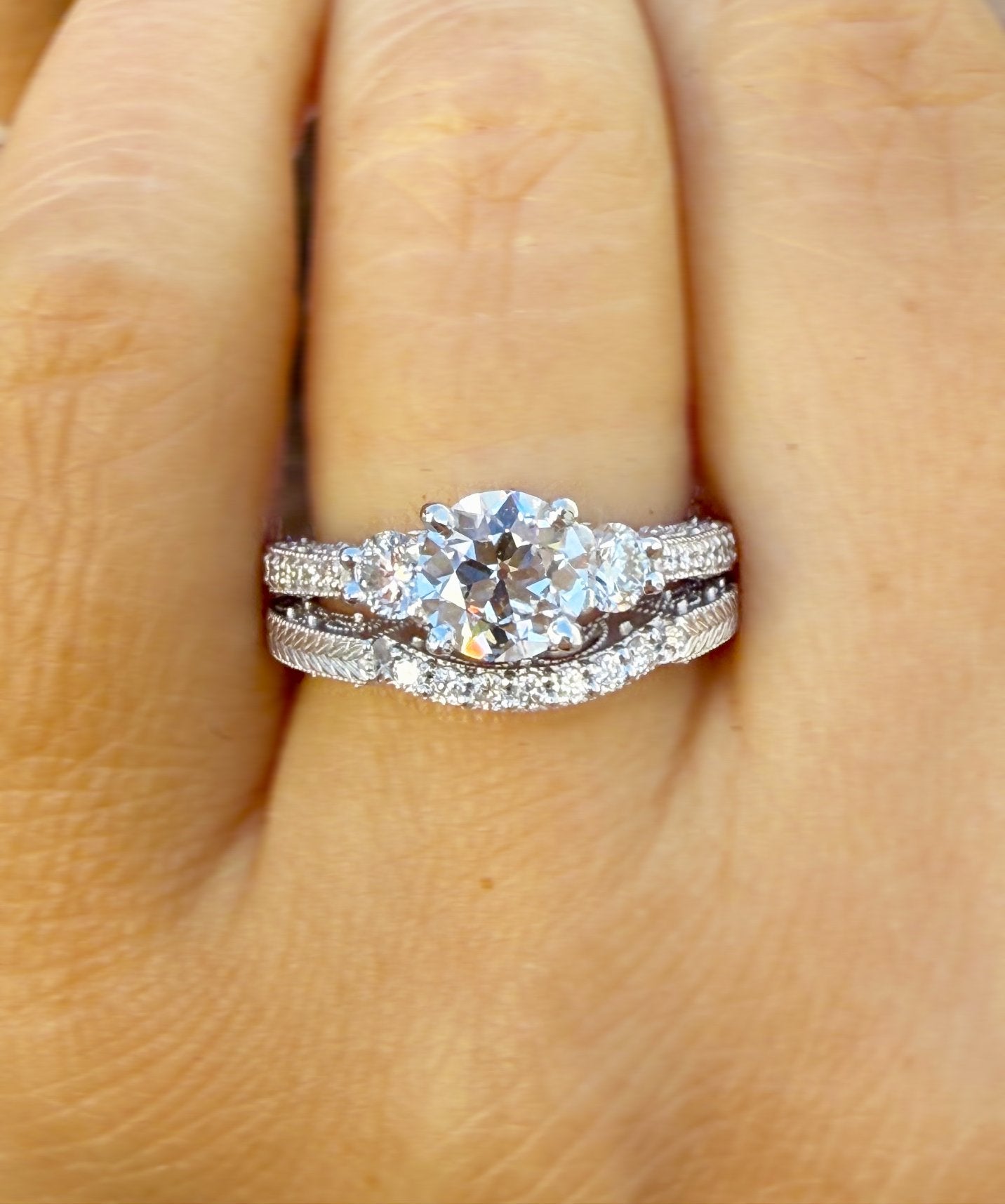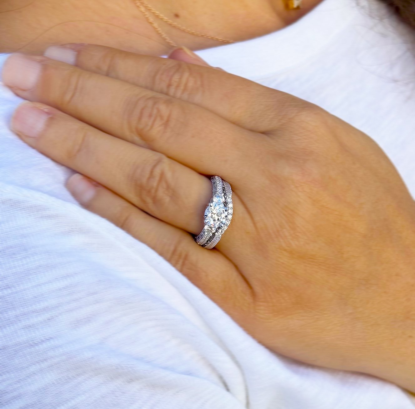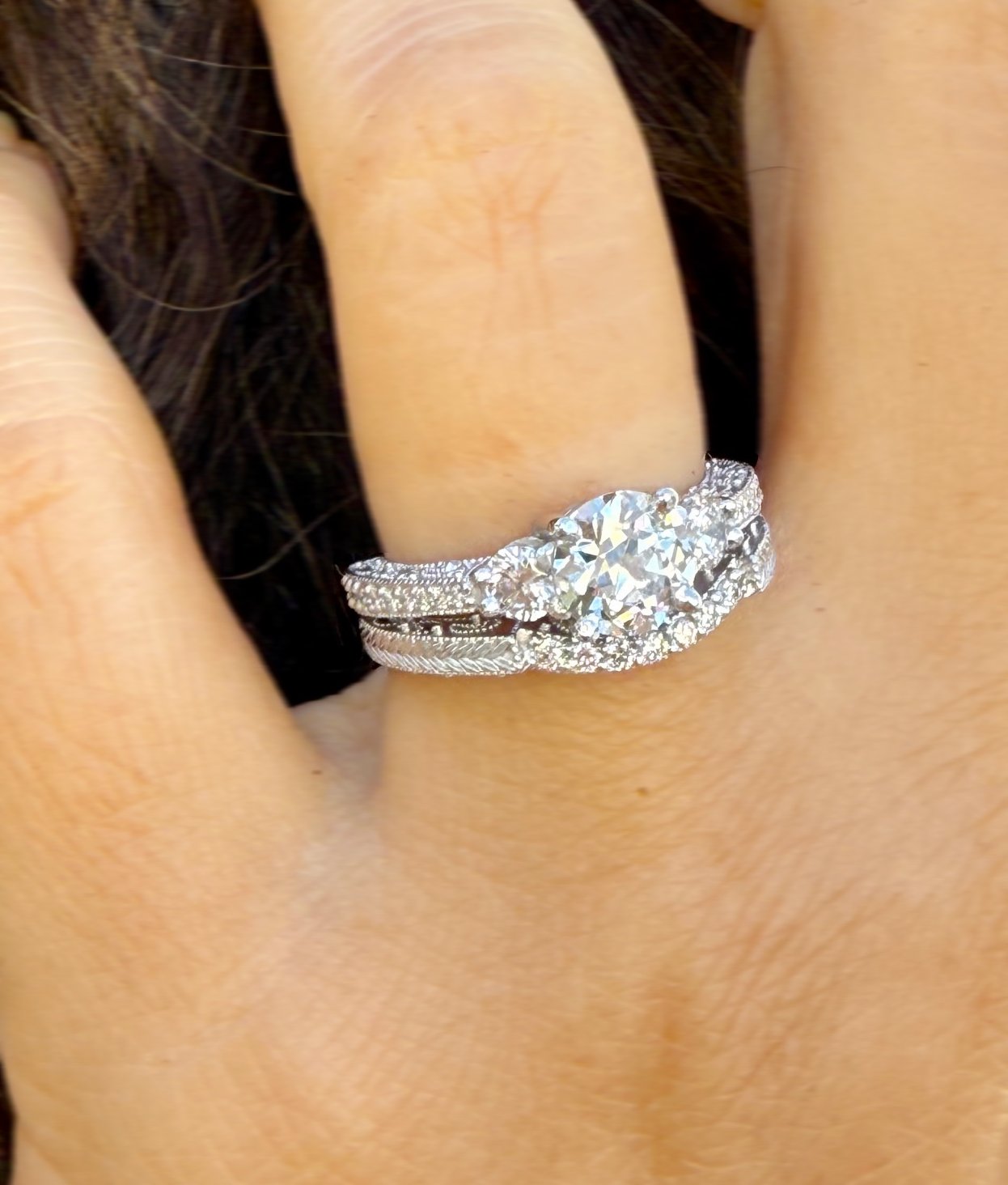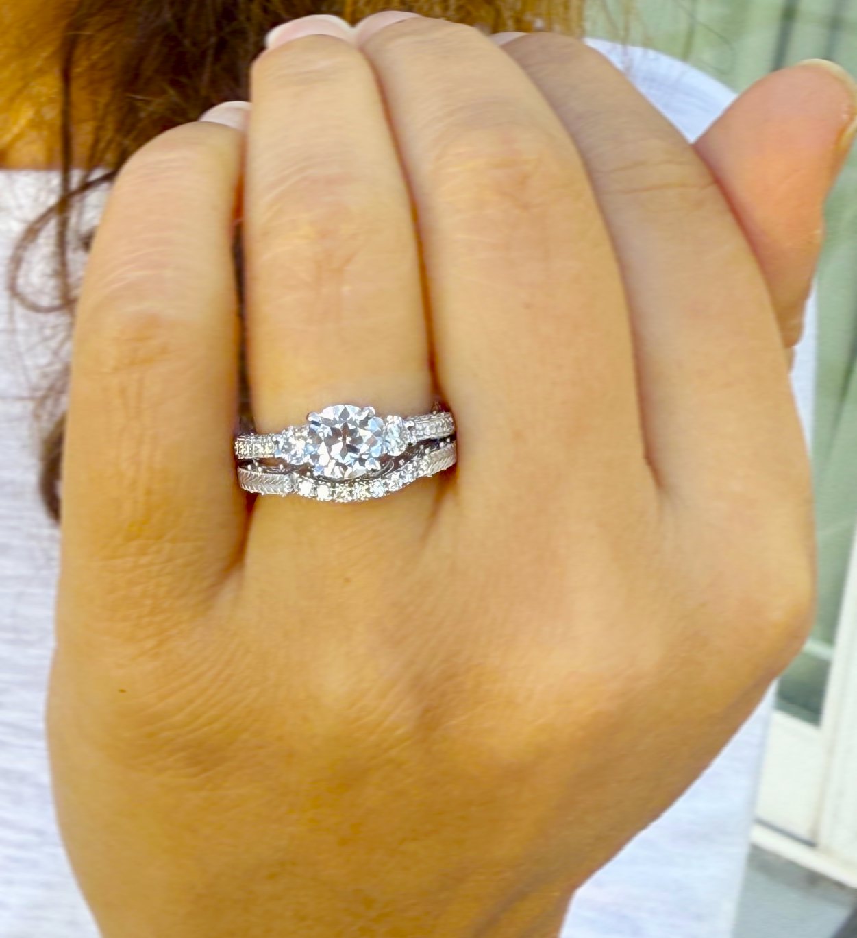 Perfect for engagements, weddings, or meaningful anniversaries, this antique-style moissanite bridal set is a symbol of enduring love and refined artistry. Its romantic design, intricate details, and luminous sparkle make it a cherished piece she’ll treasure for a lifetime.