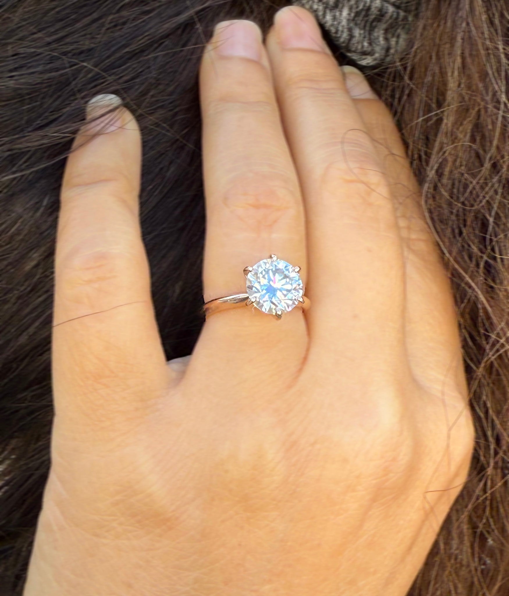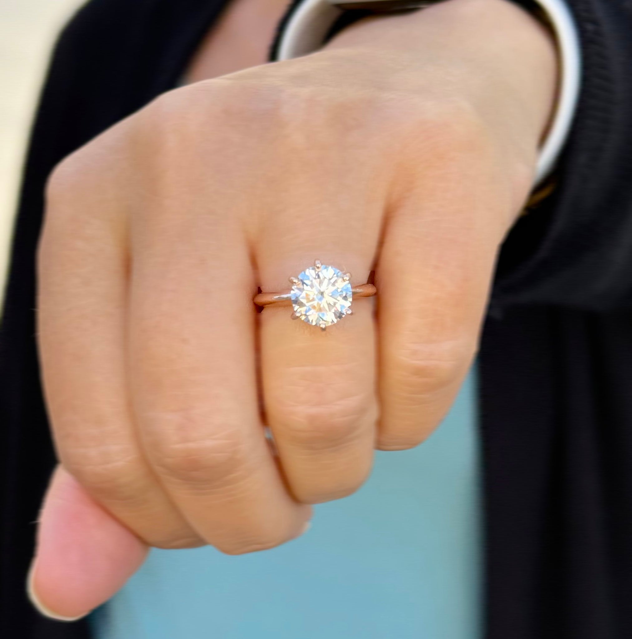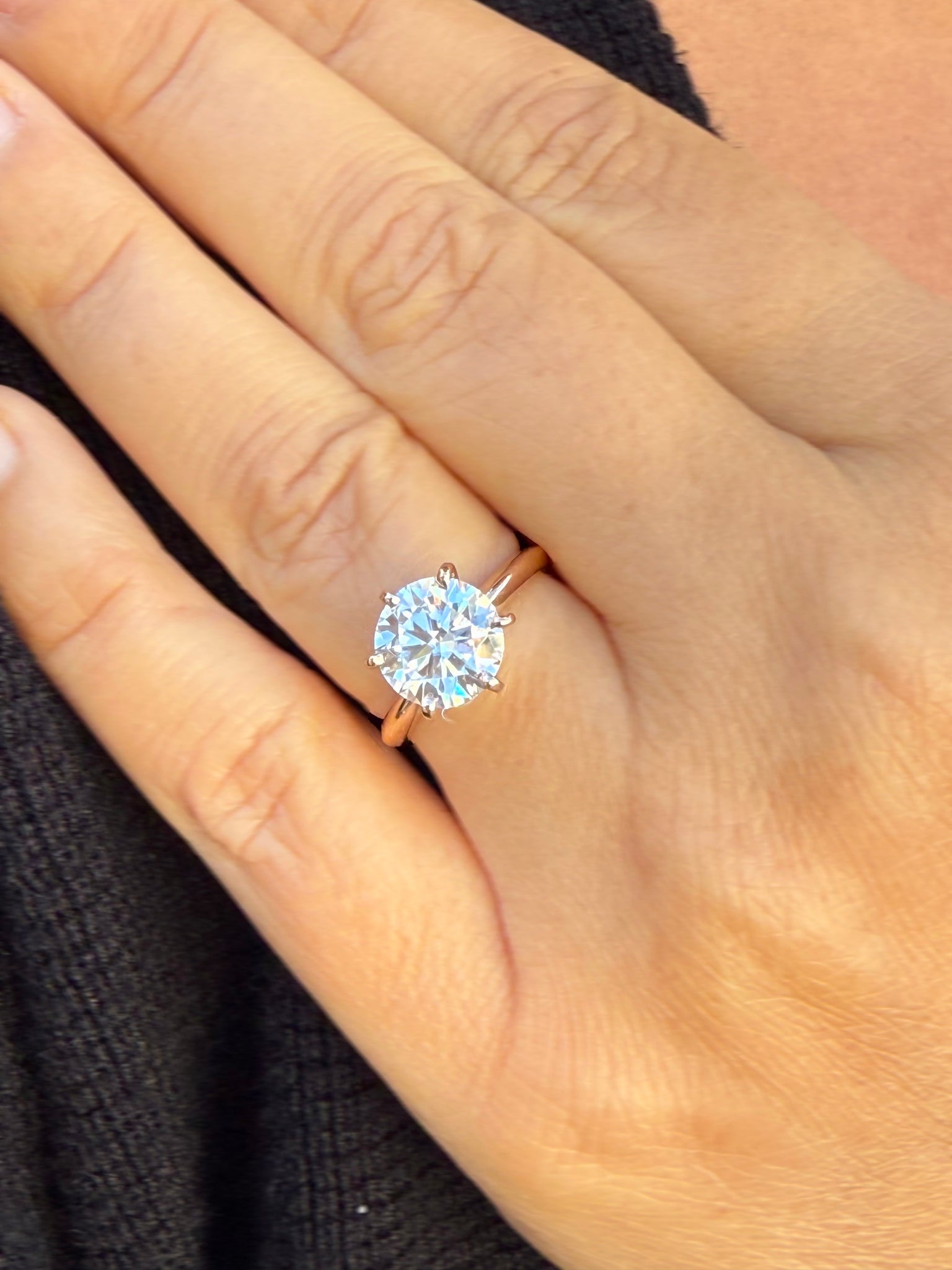 The solid rose gold band adds a touch of sophistication and strength, while the six-prong design ensures the moissanite remains secure and perfectly elevated for optimal brilliance. Each ring is crafted with exceptional attention to detail, offering comfort, durability, and an unmistakable glow that captures the essence of true love.