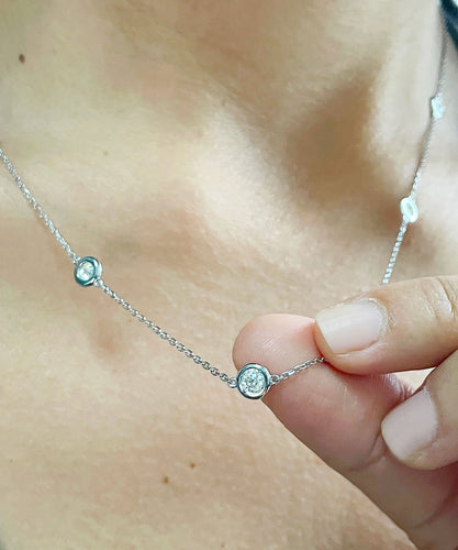 14K Solid White Gold Round Cut Moissanite Bezel Set Necklace Pendent Diamonds By The Yard Style 2.00ctw