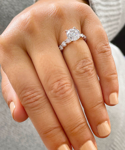 14K Solid Rose Gold Round Cut Moissanites Engagement Ring Eternity Style Prong Set 4.00ctw