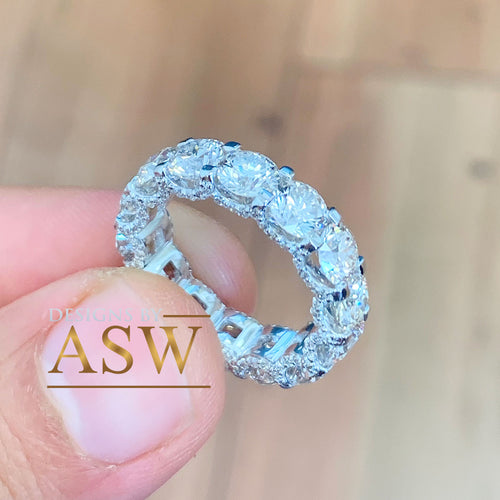 14K Solid White Gold Round Cut Forever One Moissanite Eternity Band Three sided Deco, Bridal, Wedding, 5.50mm 7.00ct