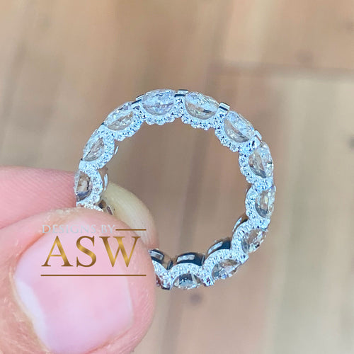 14K Solid White Gold Round Cut Moissanite Eternity Band Three sided Deco, Bridal, Wedding, 5.50mm 7.00ct