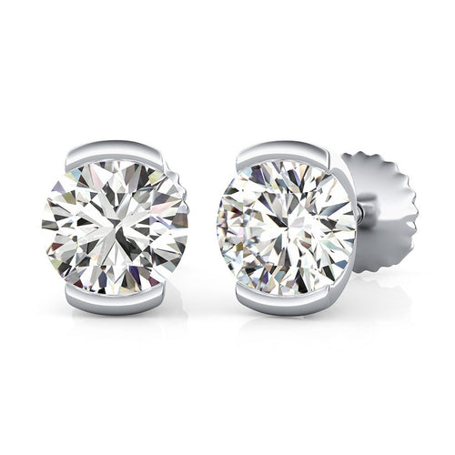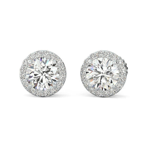 14K White Gold Round Cut Forever One Moissanite Semi Bezel Set Halo Earrings, Bridal, Wedding, Anniversary, Solitaire, Gift 1.00ctw