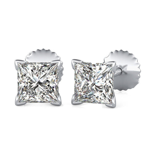 14K White Gold Princess Cut Forever One Moissanite V Prong Martini Style Earrings, Bridal, Wedding, Anniversary, Solitaire, Gift 0.82ctw