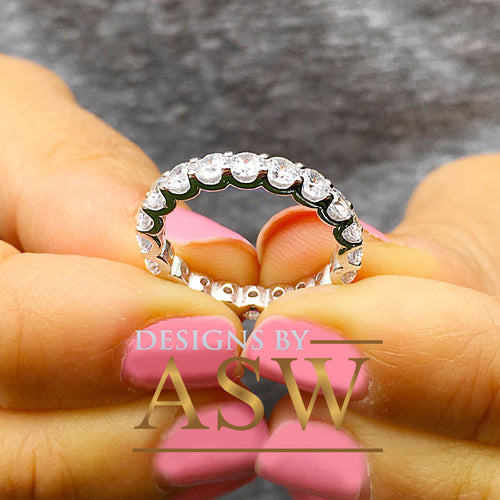 14K Solid White Gold Round Cut Forever One Moissanite Eternity Band Deco, Bridal, Wedding, Anniversary, Propose, Promise ring 2.00ct 3.0mm