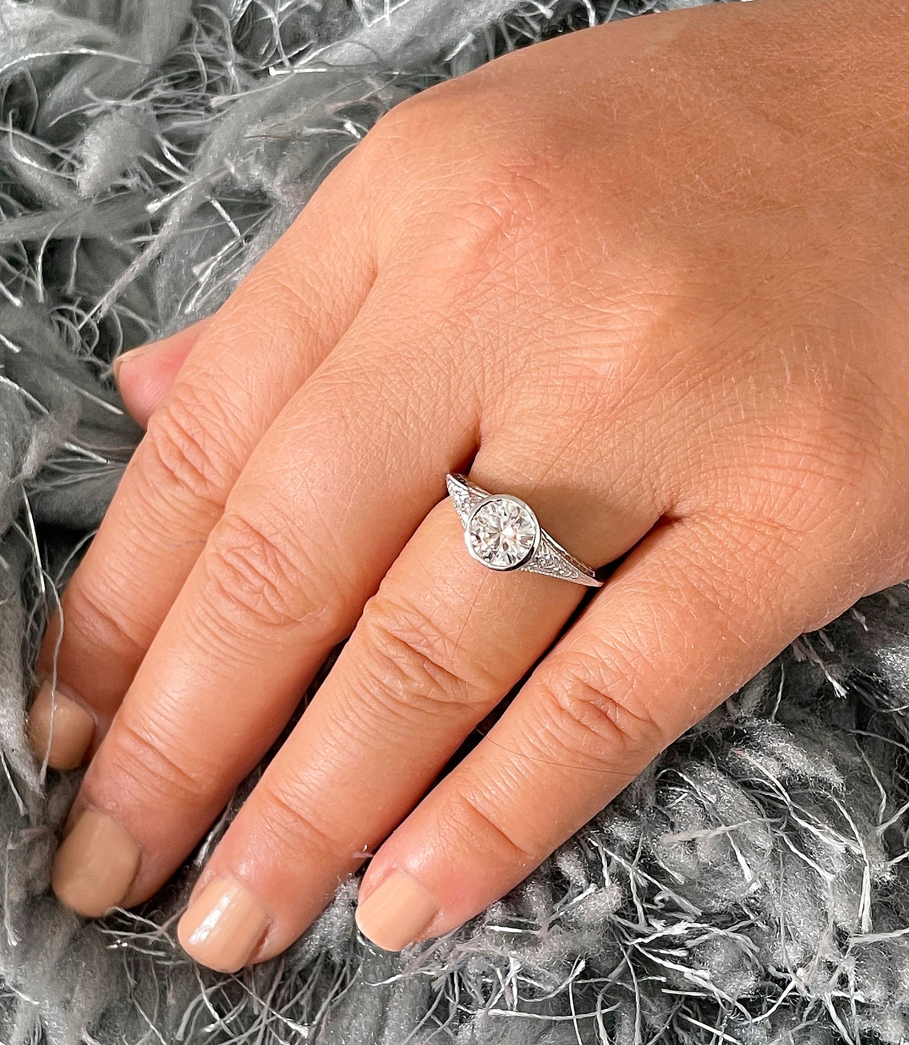 This is the perfect conflict-free alternative to a mined diamond, these stones are internally flawless, D in color and brilliant in cut with lots of shine.