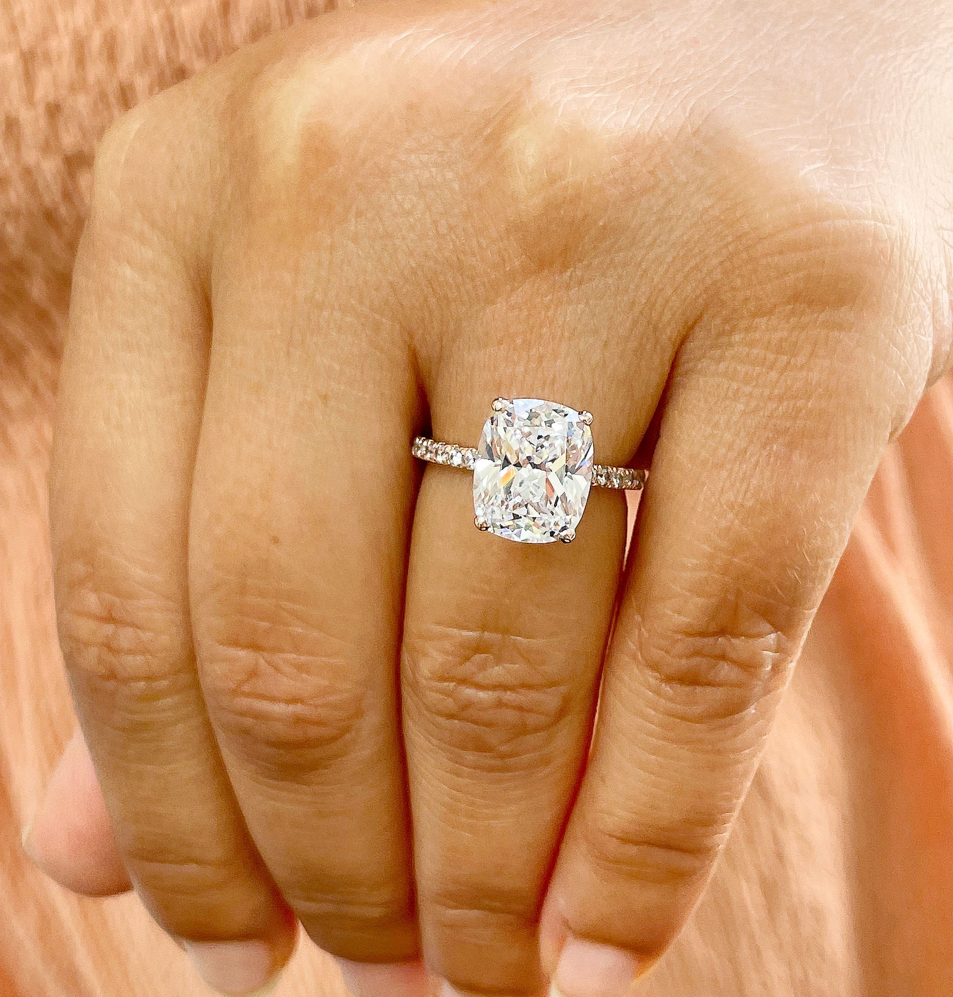 14k Solid Rose Gold Cushion And Round Cut Simulated Diamond Engagement Ring Four Prong Style 4.25ctw