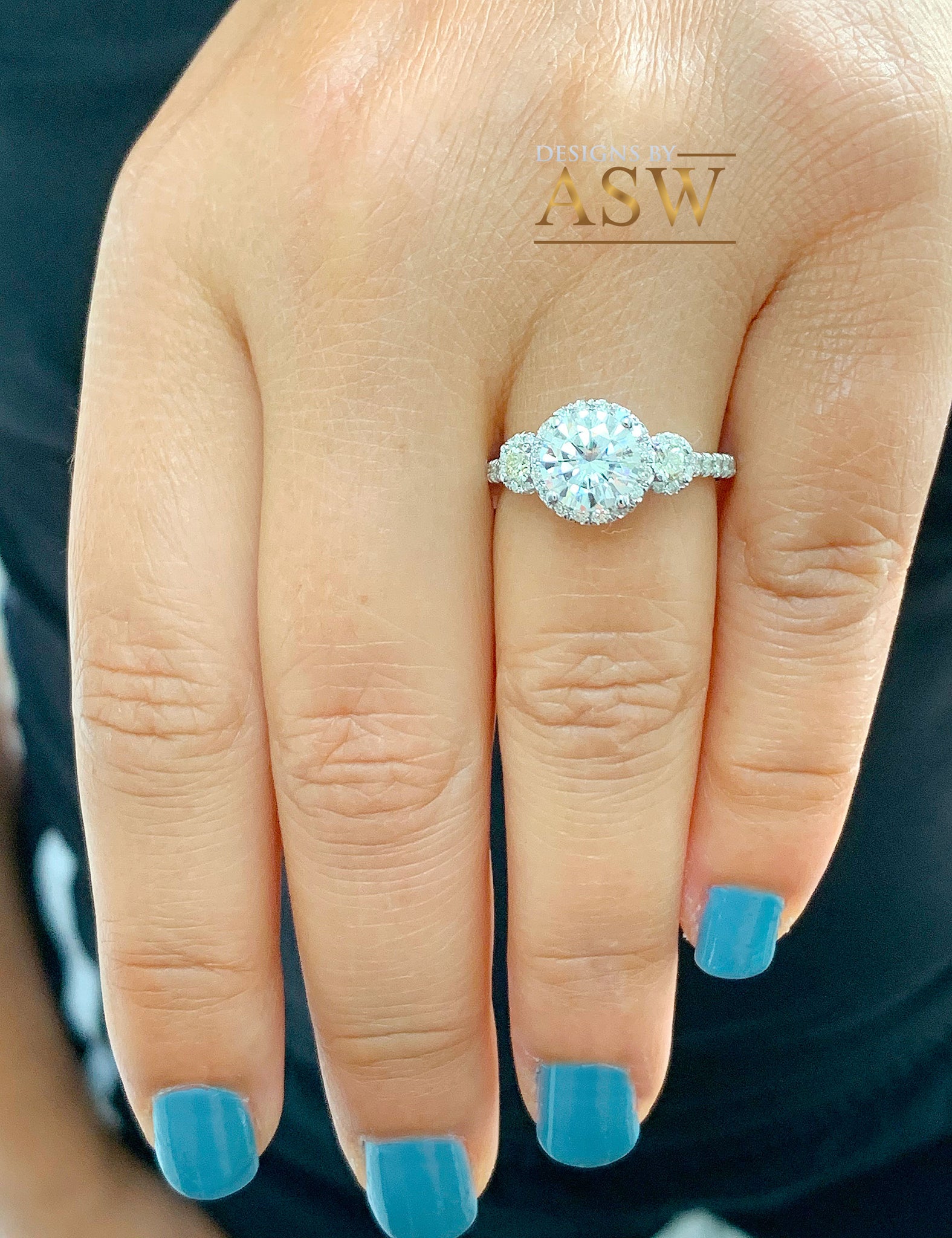 This is the perfect conflict-free alternative to a mined diamond, these stones are internally flawless, D in color and brilliant in cut with lots of shine.