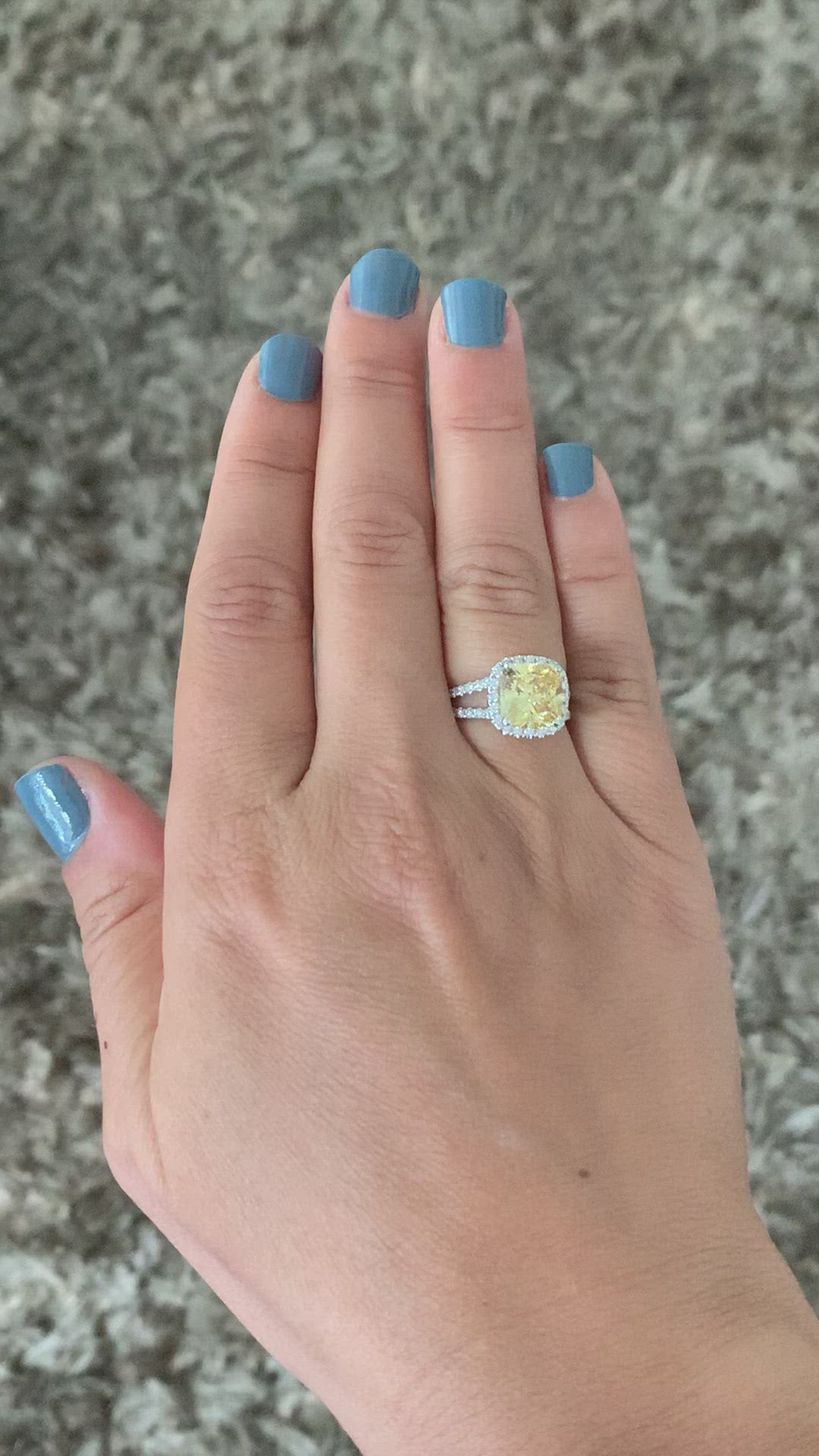 This is the perfect conflict-free alternative to a mined diamond, these stones are internally flawless, D in color and brilliant in cut with lots of shine.