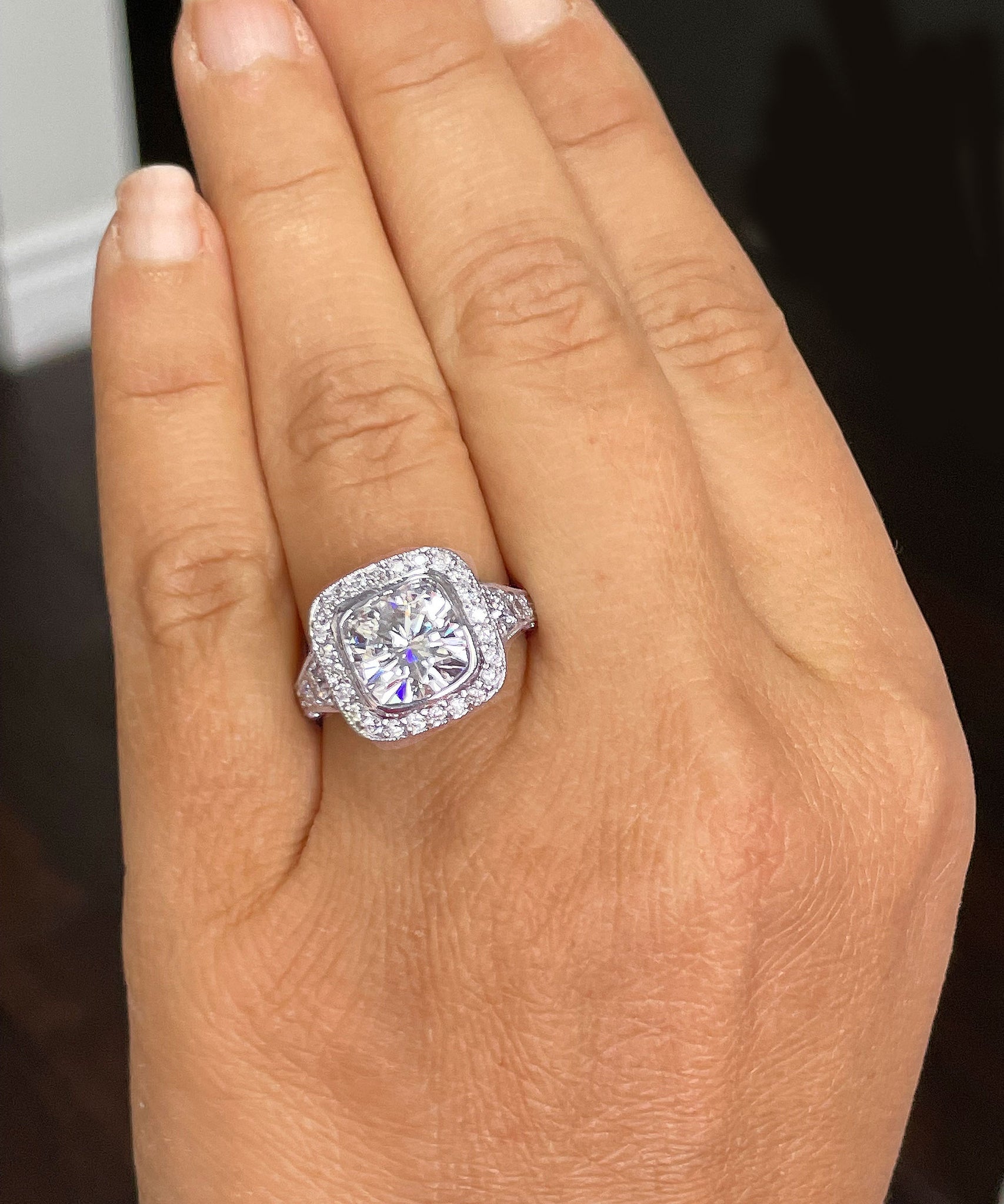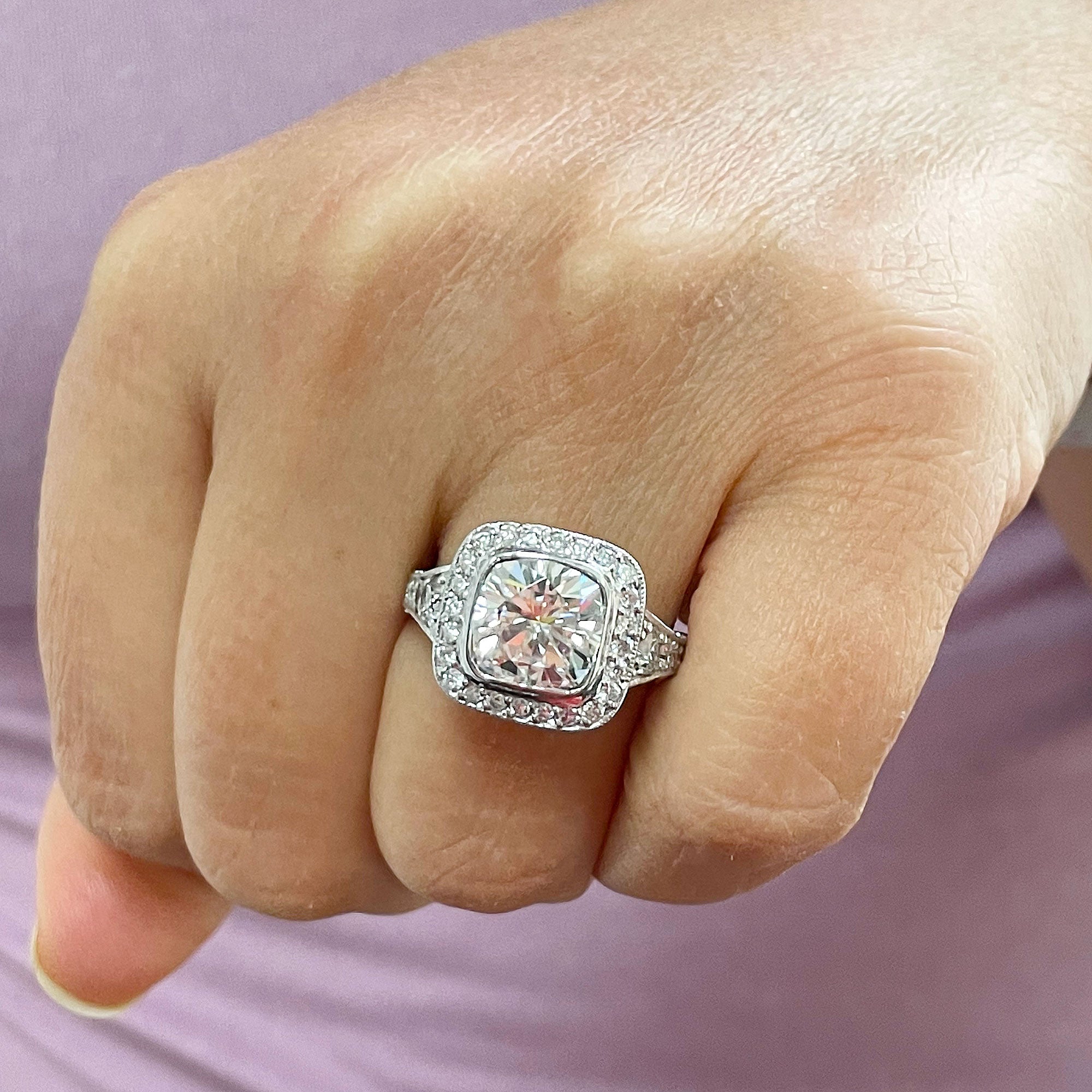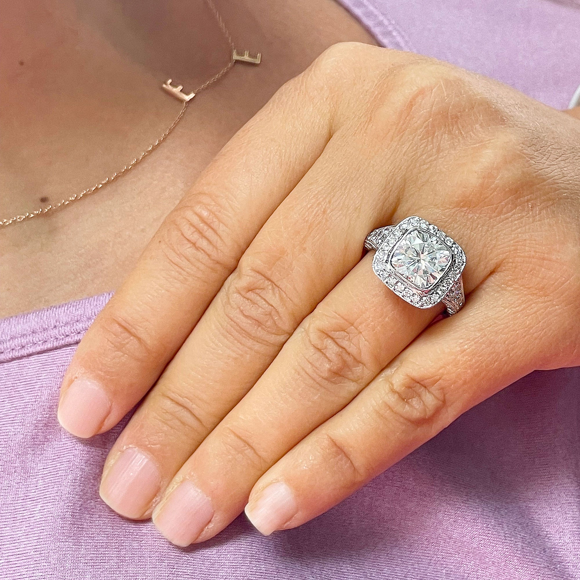 This is the perfect conflict-free alternative to a mined diamond, these stones are internally flawless, D in color and brilliant in cut with lots of shine.