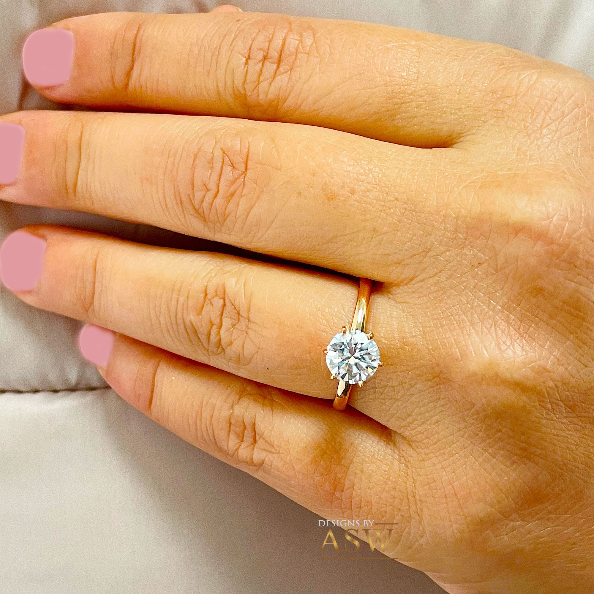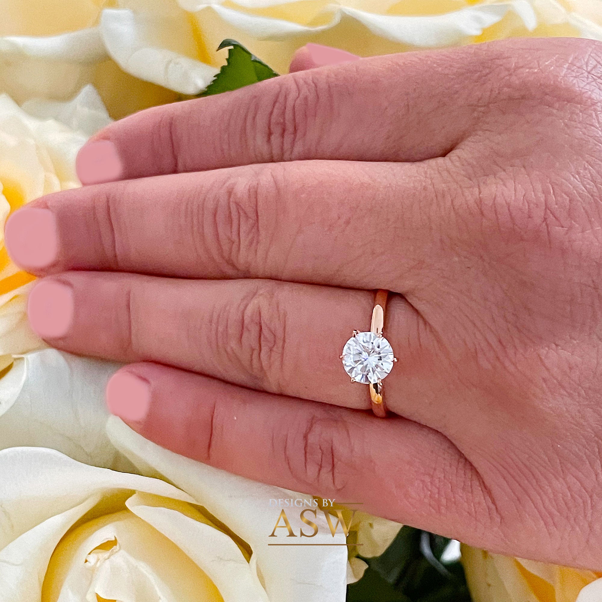 14k rose gold, 1.20ctw round cut simulated diamonds, art-deco solitaire style engagement ring