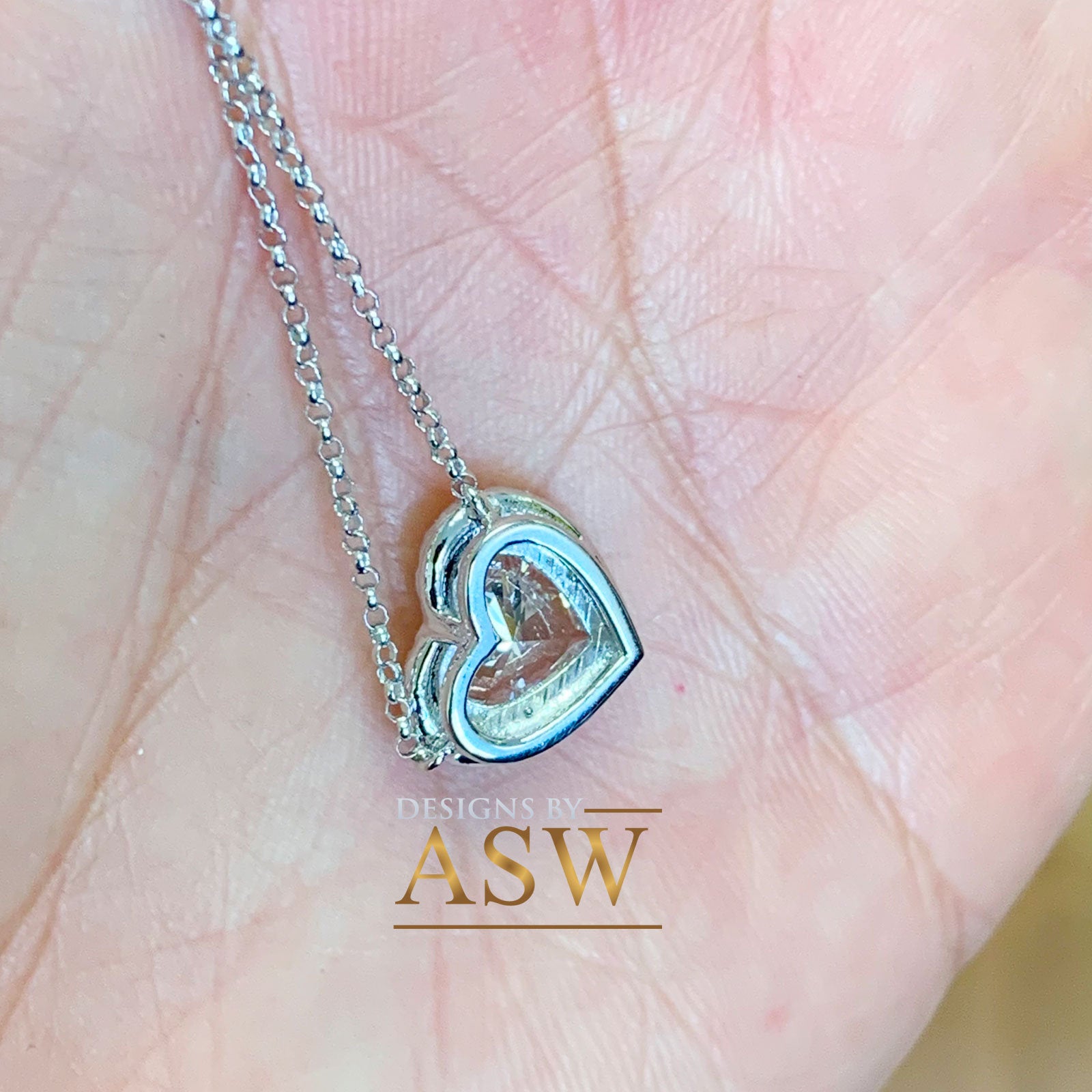 • Load image into Gallery viewer, Large 14k solid white gold heart shape simulated emerald and round cut simulated diamonds necklace pendent and chain bridal gift 3.70ctw