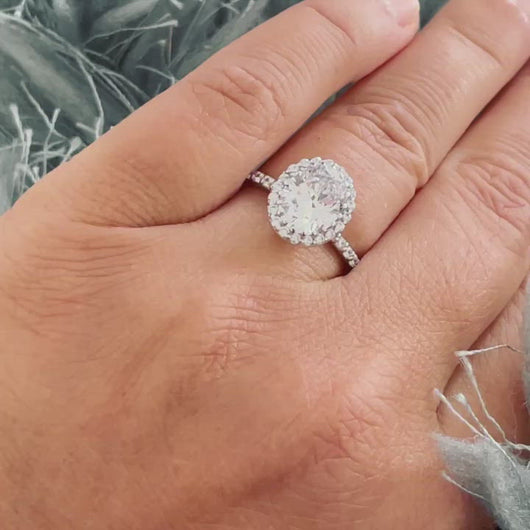 This beautiful and elegant ring design is a beautiful creation showcasing the center oval cut surrounded with beautiful and sparkly round cut diamonds.
