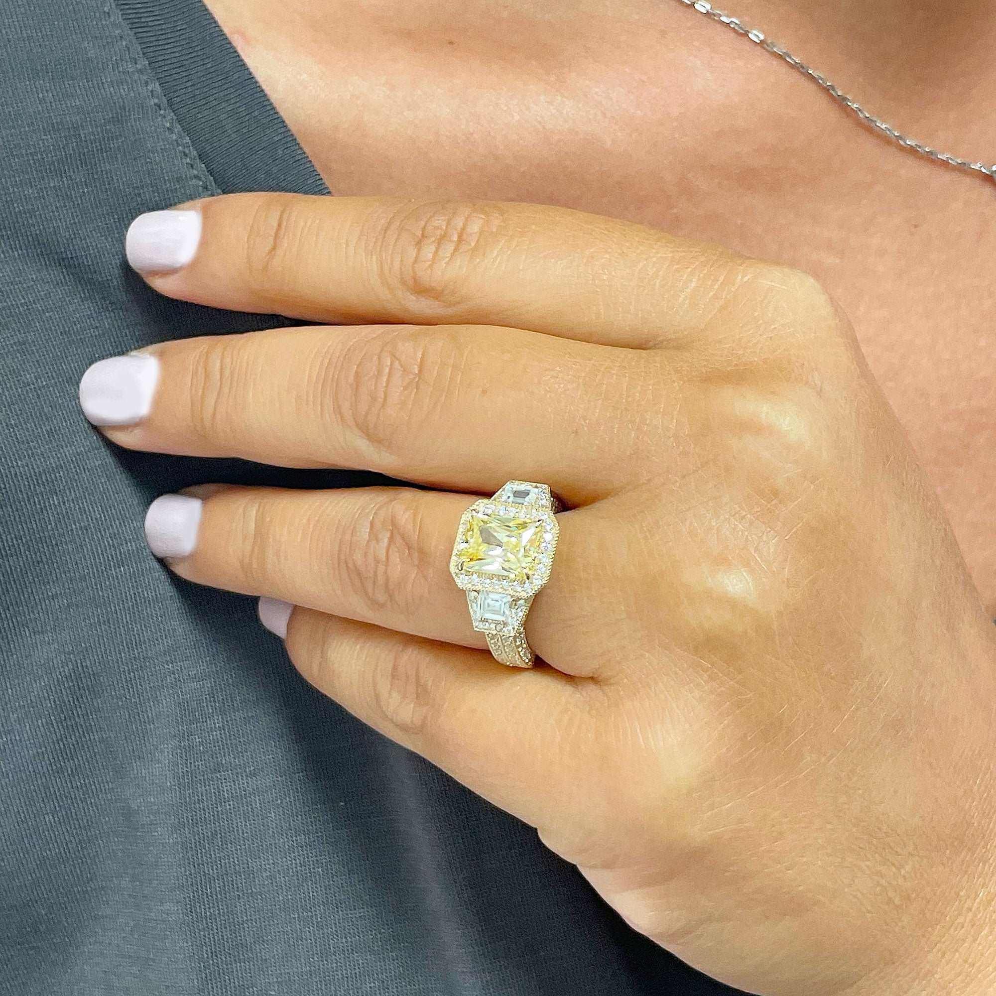 Side Stones: Carat Weight: 1.50ctw white and fancy yellow